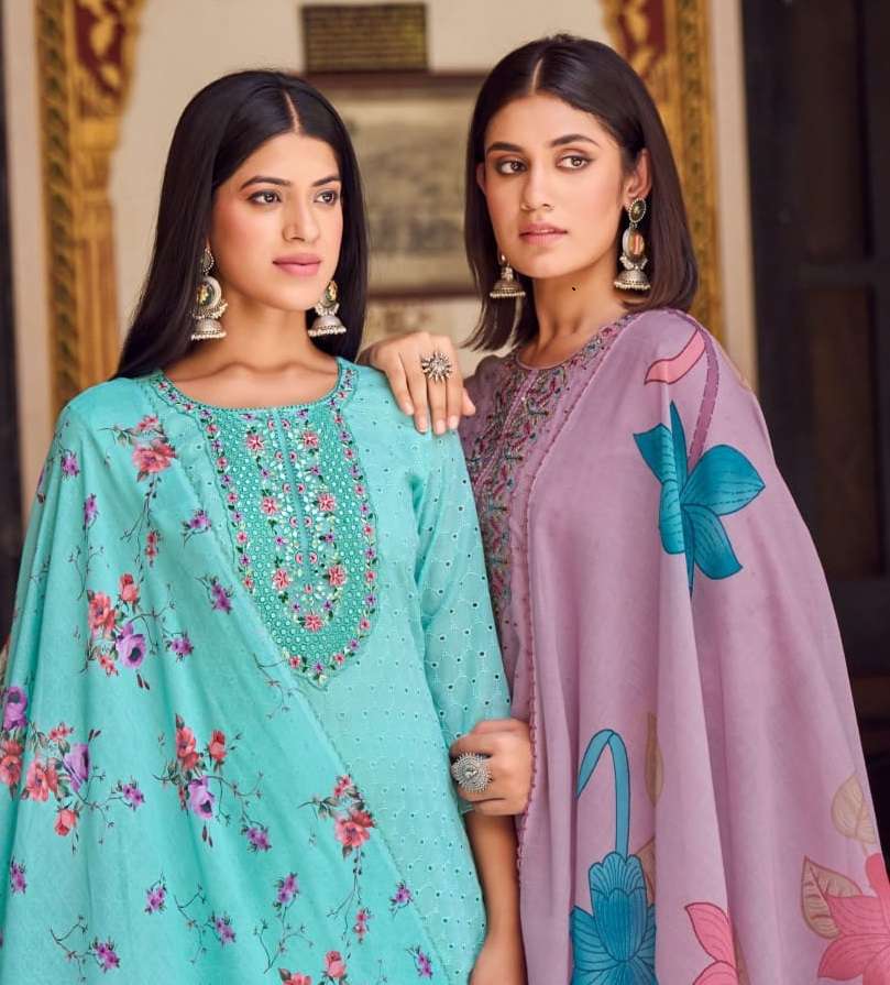 Rangoon Vishakha Vol 2 Cotton Fancy Embroidery Work Designer Kurti Pant Dupatta Set