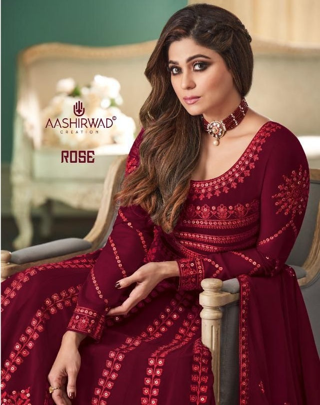 Aashirwad Rose Georgette Silk Santoon Fancy Designer Salwar Suit