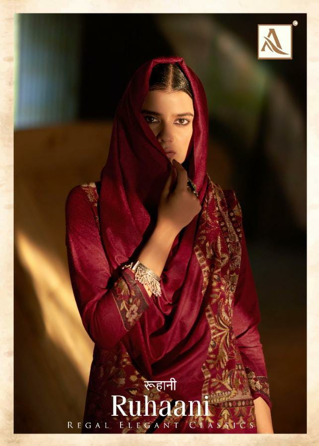 Top: Pure Wool Pashmina Designer Weaving Jacquard Bottom: Pure Wool Pashmina Solid Dupatta: Pure Wool Pashmina Designer Weaving Jacquard Box Pallu Dup |
