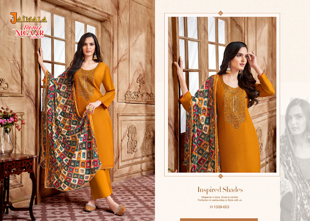 Alok Suits Jaimala Nigaar Vol 15 Rayon Slub Embroidery & Swarovski Work Suits