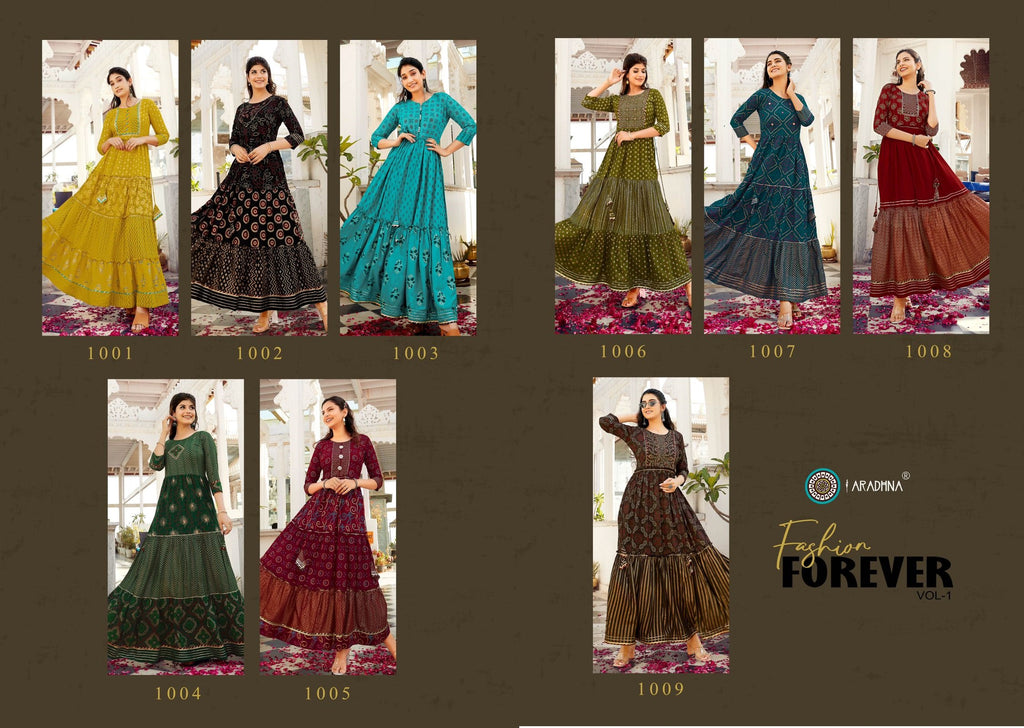 Aradhna Forever Vol 1 Rayon With Fancy Work Stylish Designer Attractive Look Long Kurti