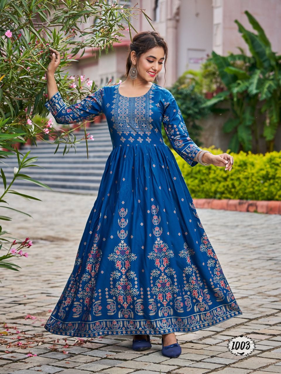 Foil Print Flair Gown Fabric: 14kg Rayon with Foil Print Work :- Heavy Foil Print |