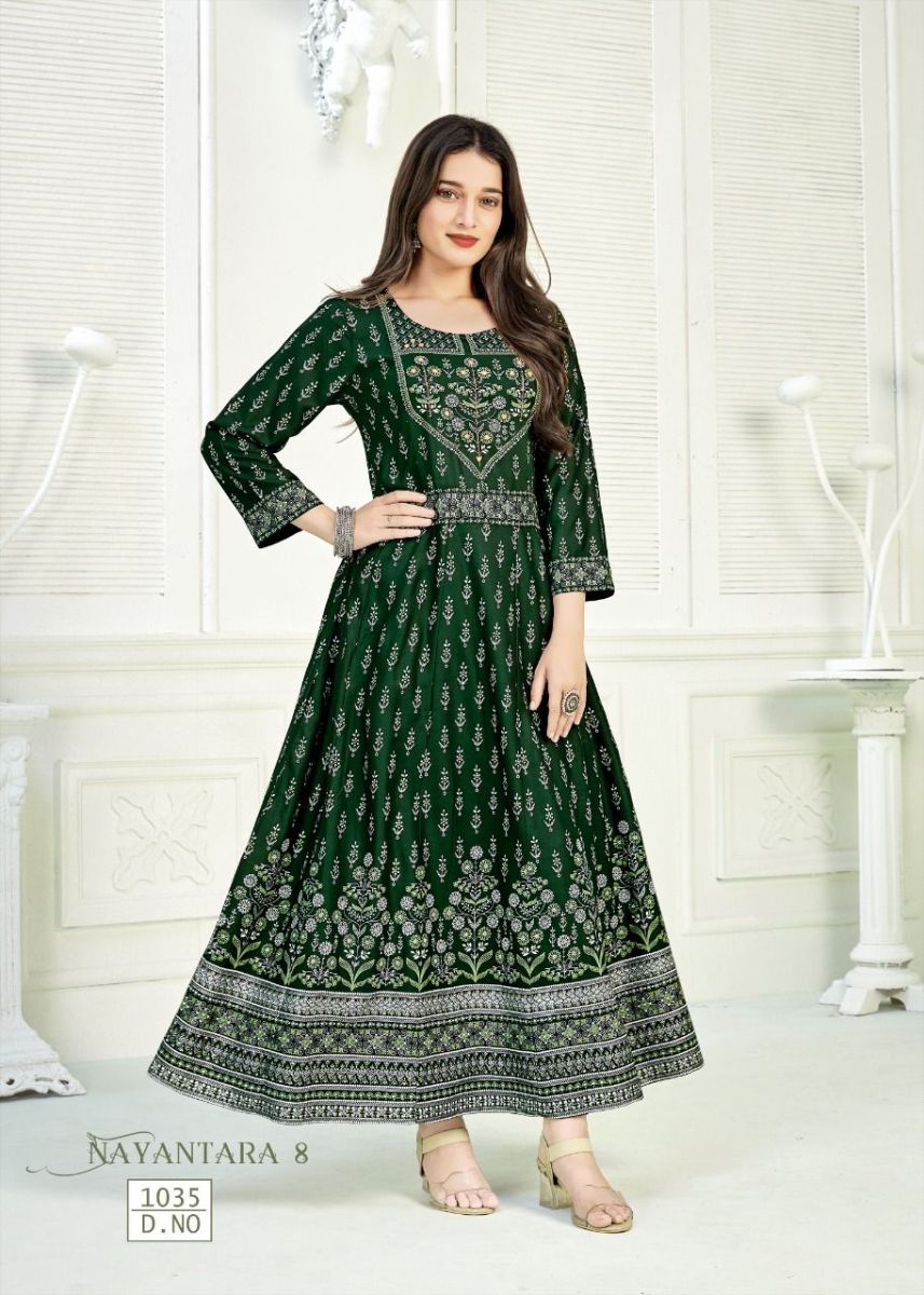 Banwery Fashion Nayantara Vol 8 Rayon With Hand Work Stylish Designer Casual Wear Long Kurti