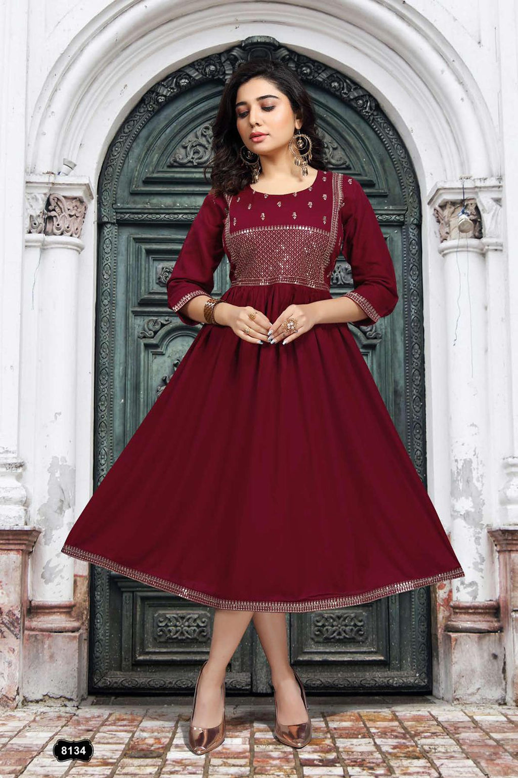 Fabric : Heavy Rayon Concept – Sequence Work & Frock Style Pattern Size – M L XL XXL |