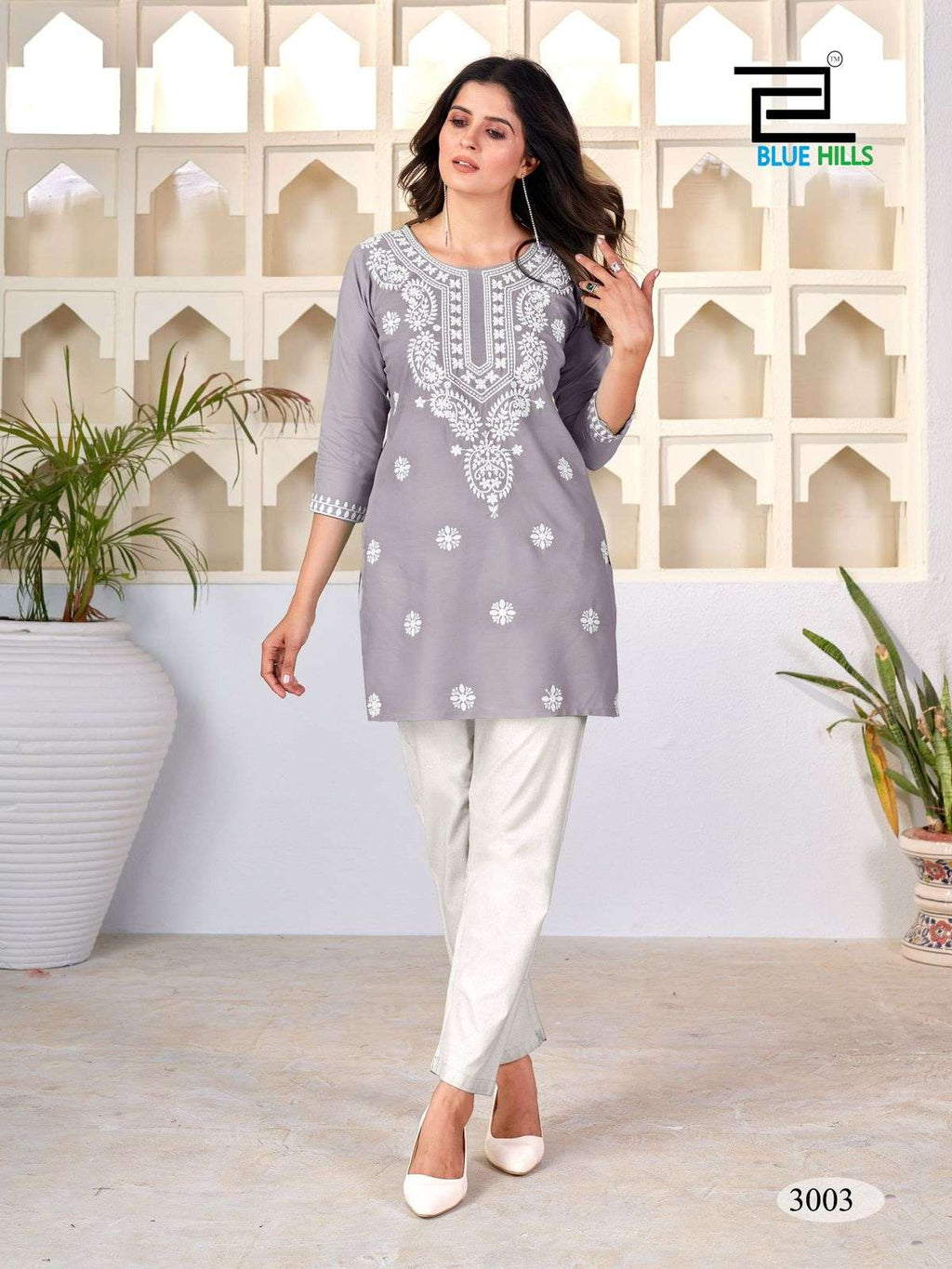 Fabric : 14 Kg Rayon With Lucknavi Work Kurti Side Cut |