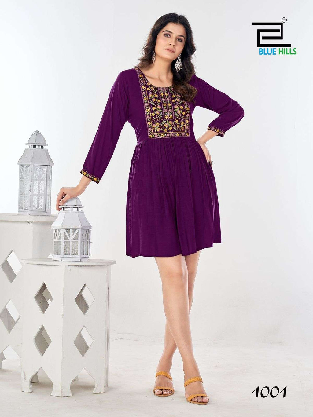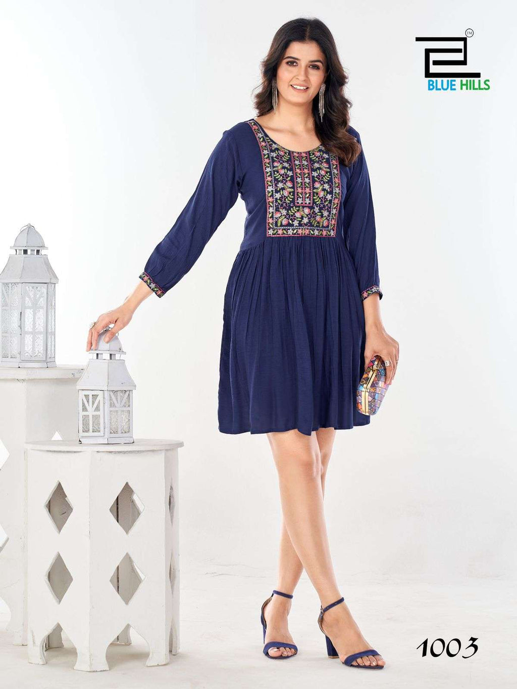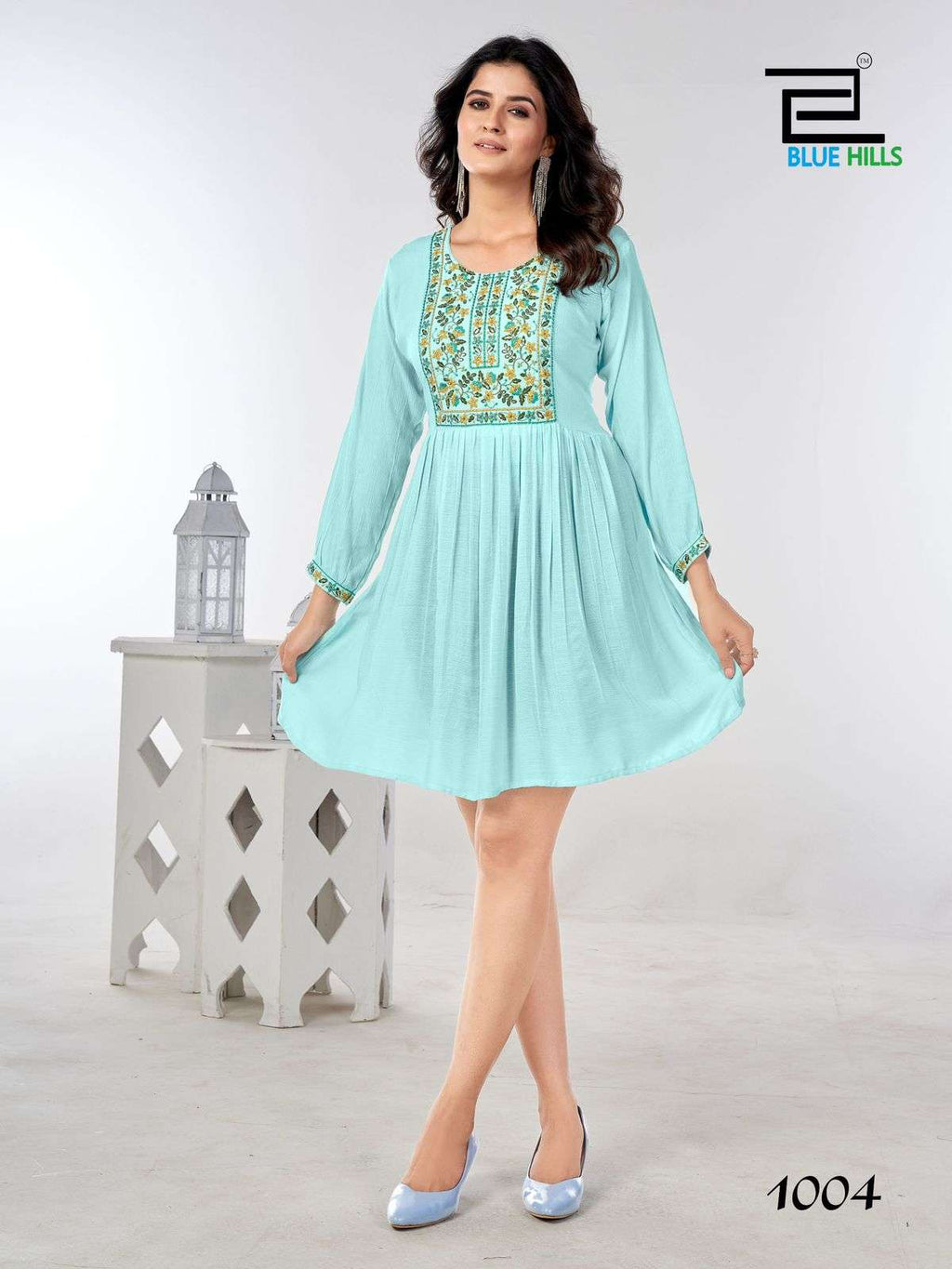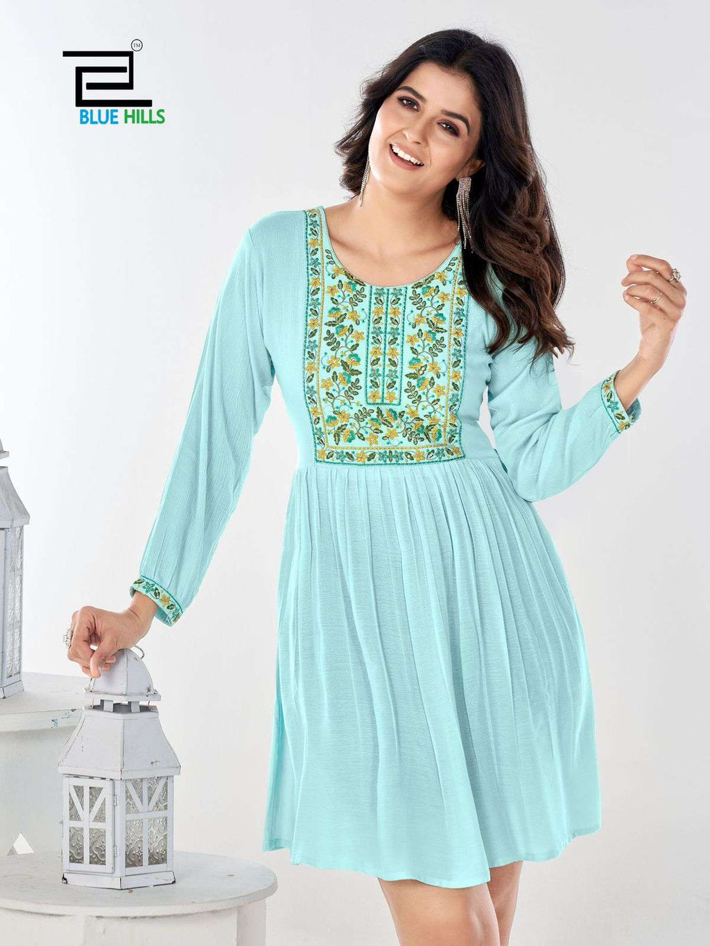 Blue Hills Bloom Rayon Daily Wear Trnding Short Kurti