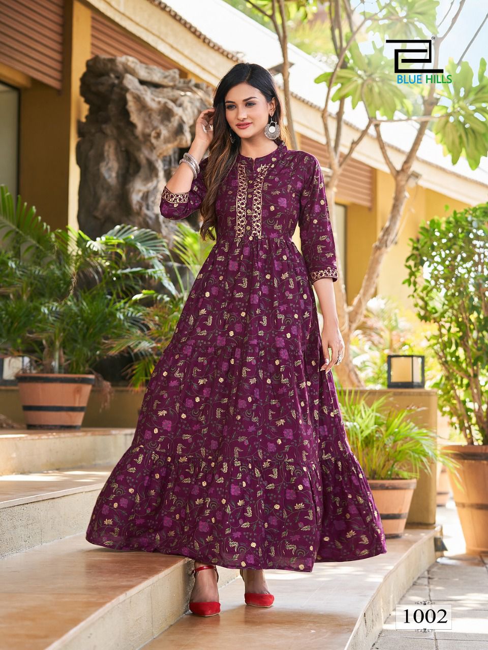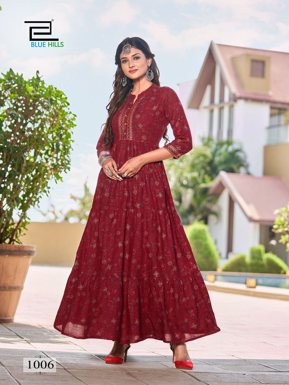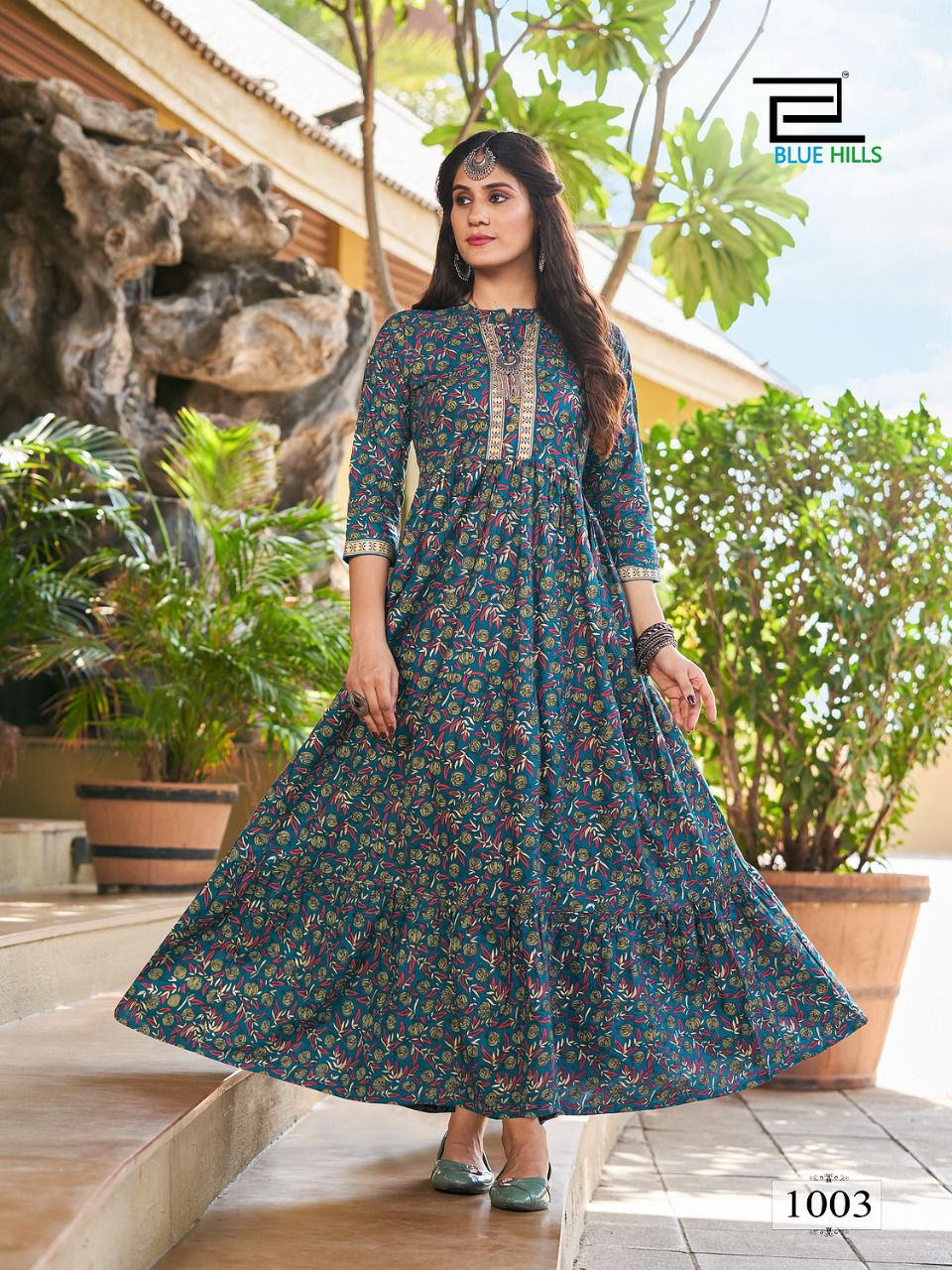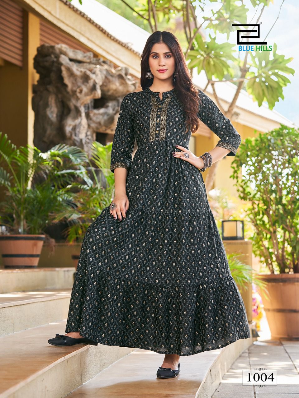 Details : Fabric : Rayon Foil Print Concept : Long Frill Gown Length- 52+ Size – M (38) L (40) XL (42) XXL (44) 3XL (46) 4XL (48) 5XL (50) |