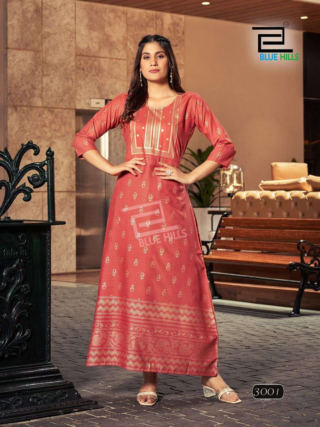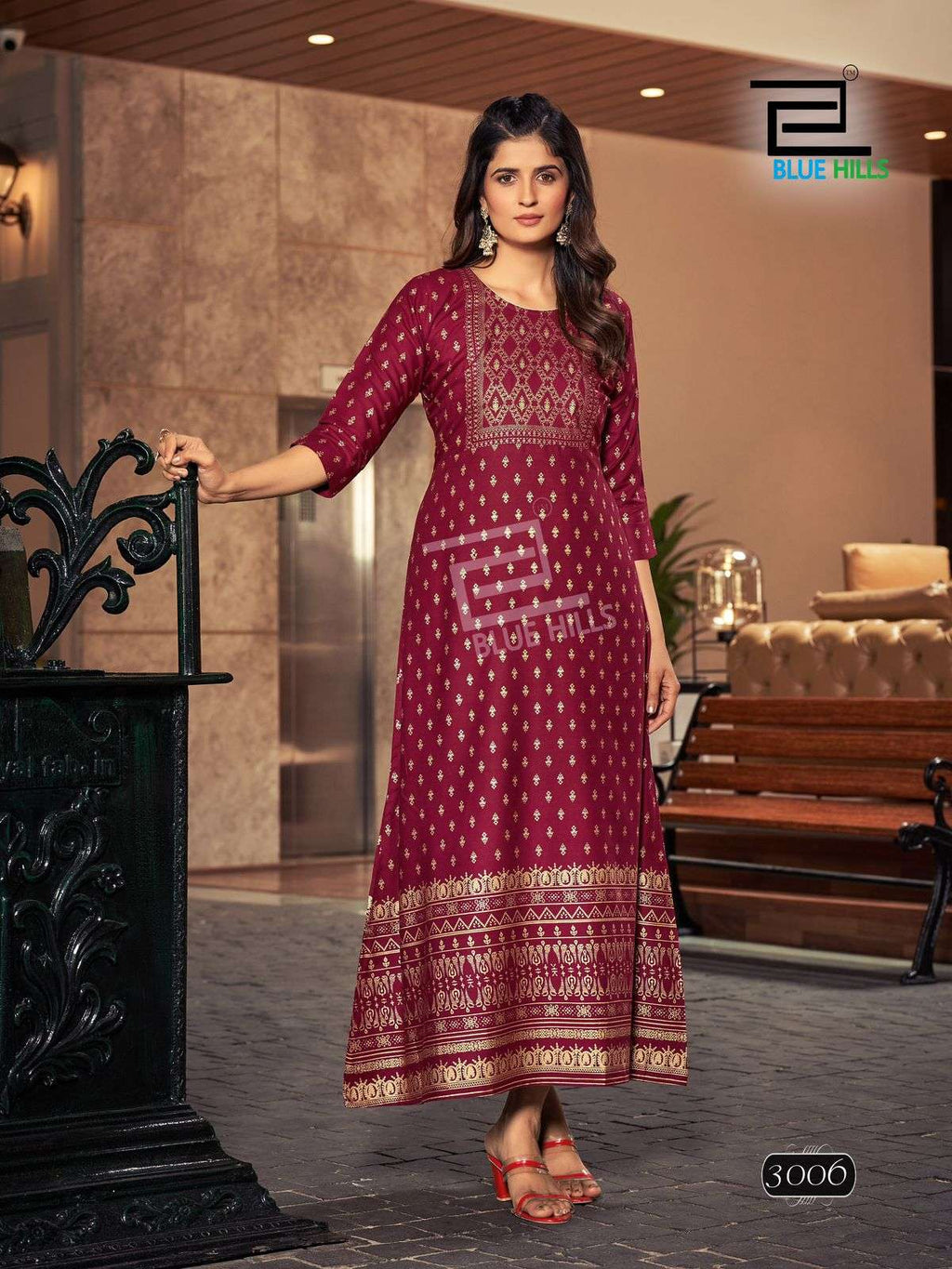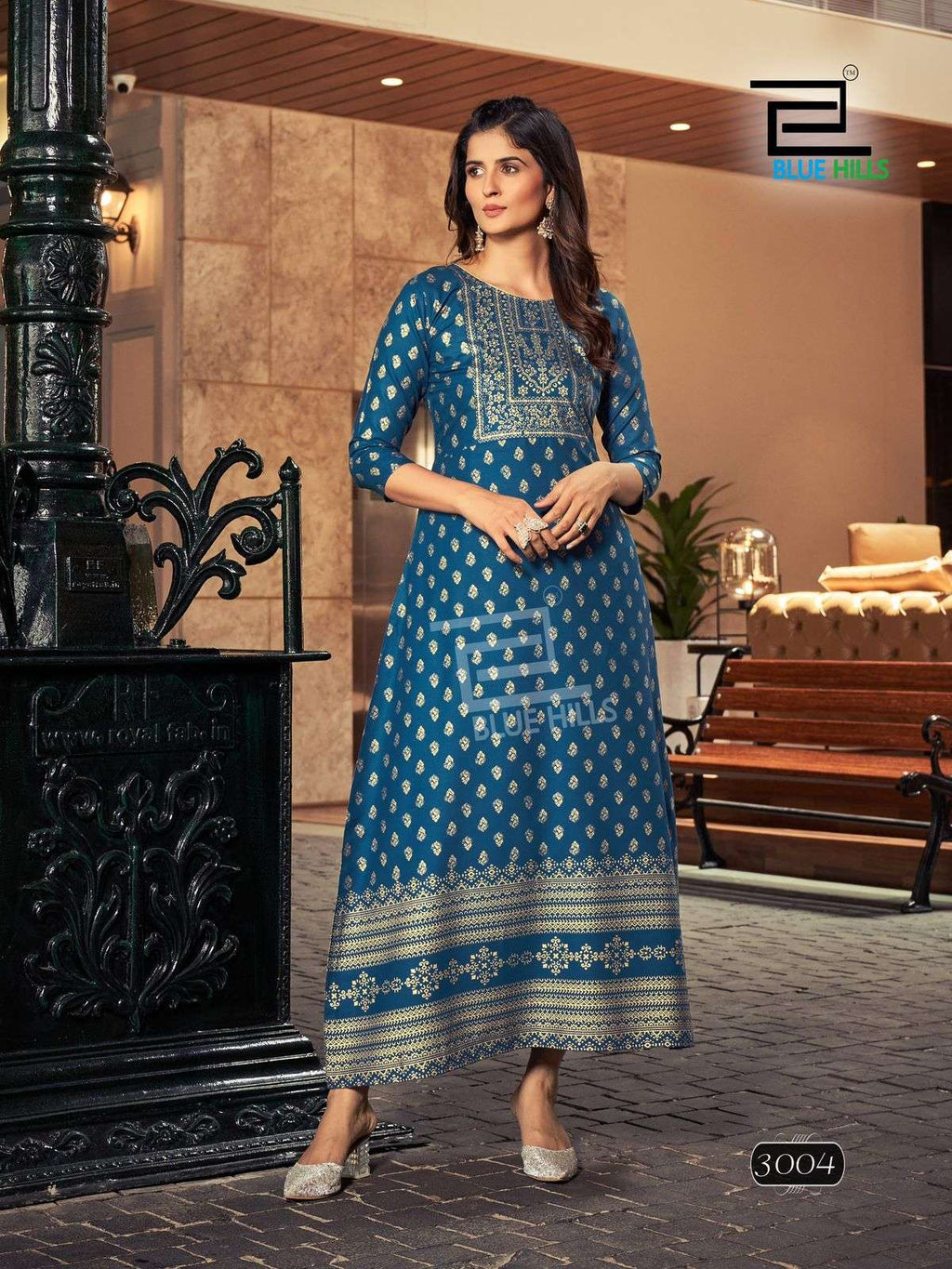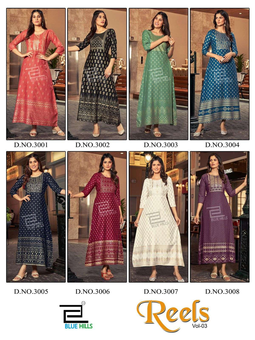 Blue Hills Reels Vol 3 Rayon Foil Print Fancy Long Gown Designer Kurti