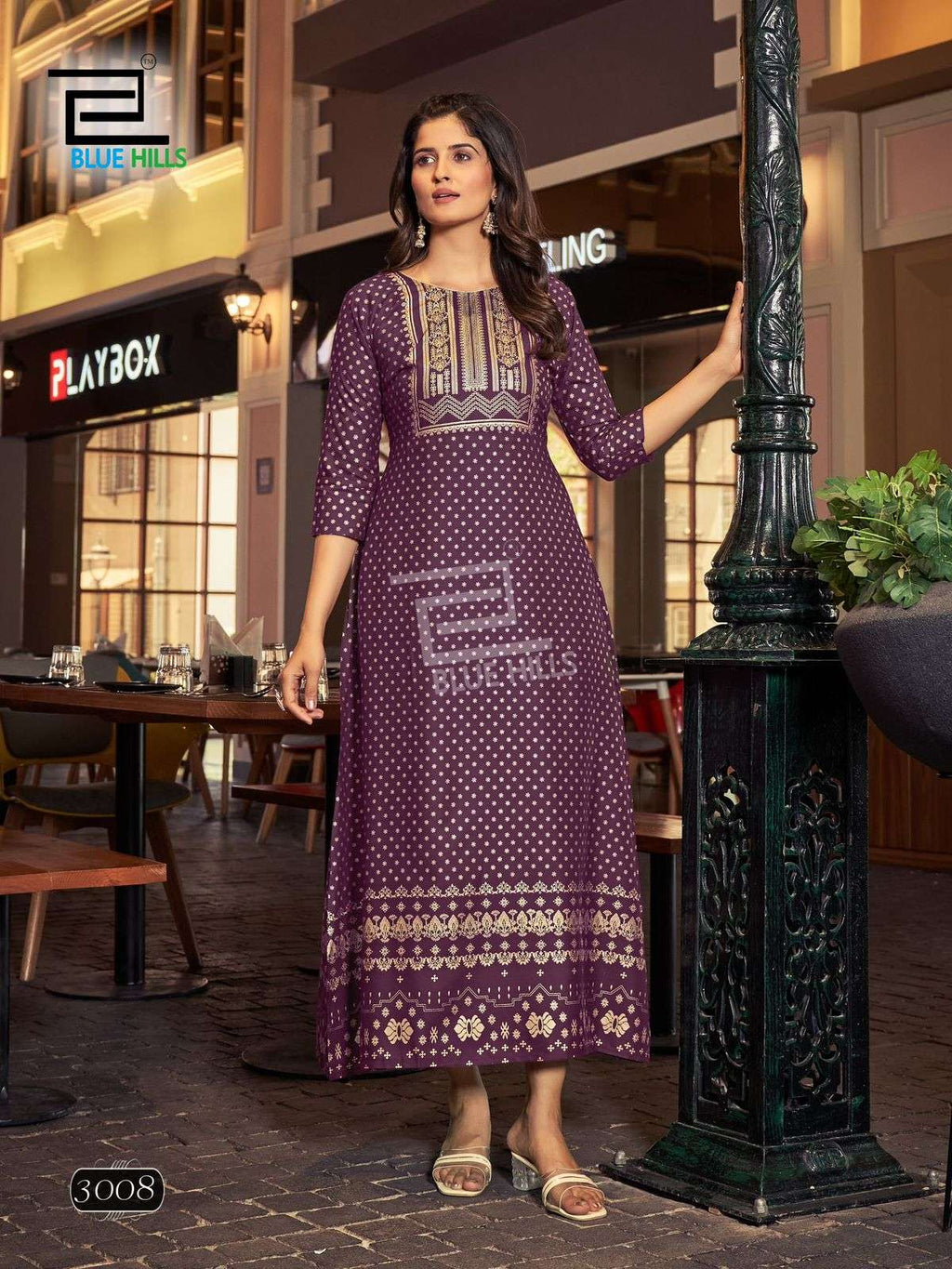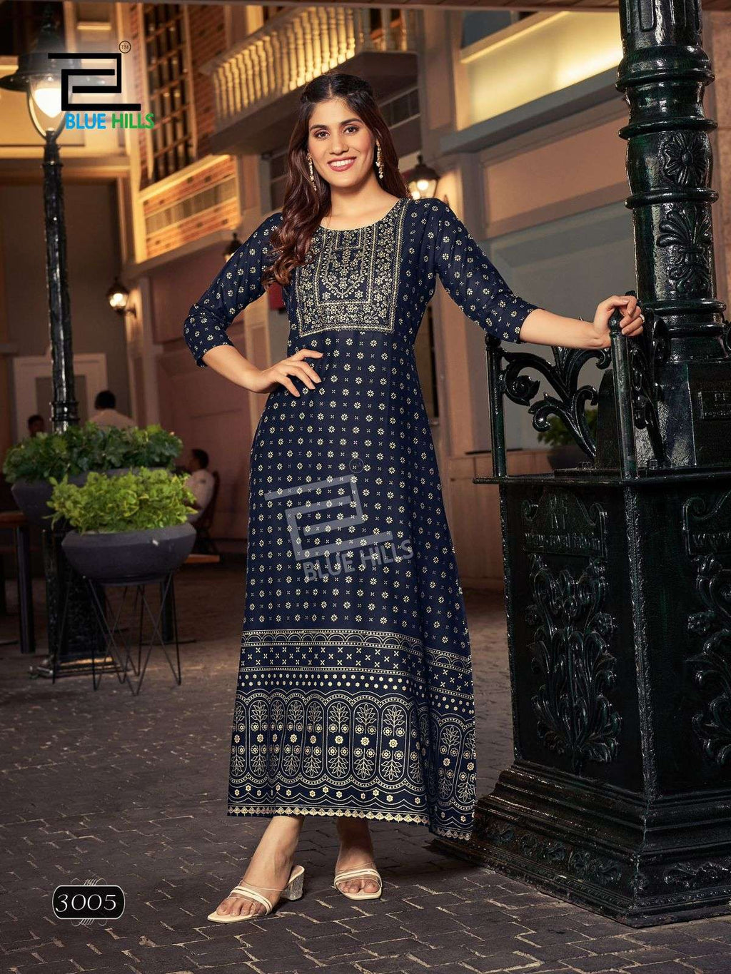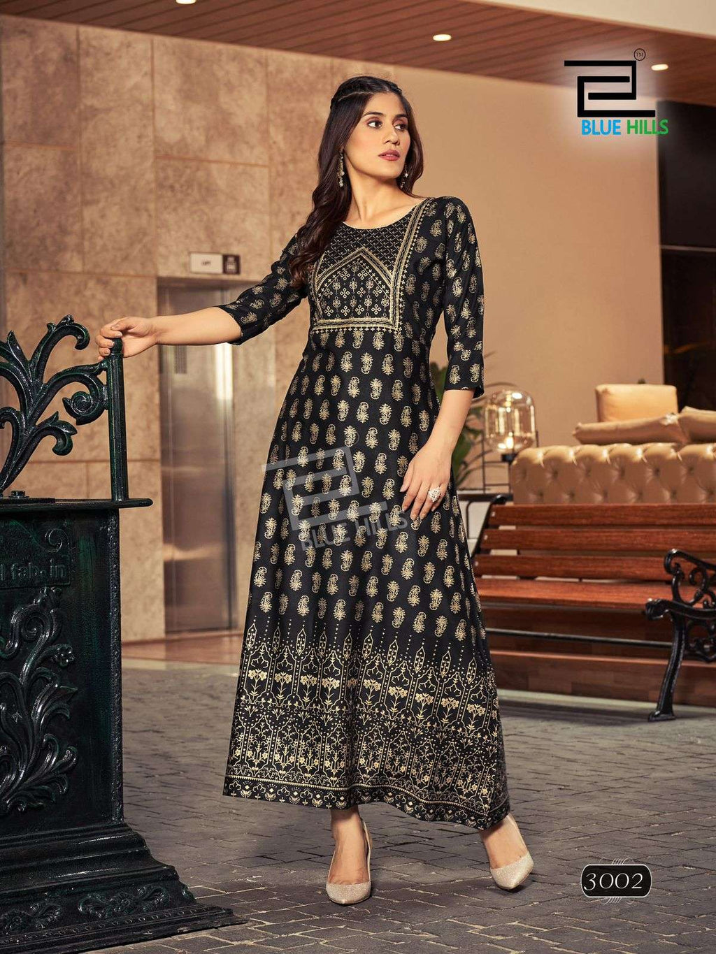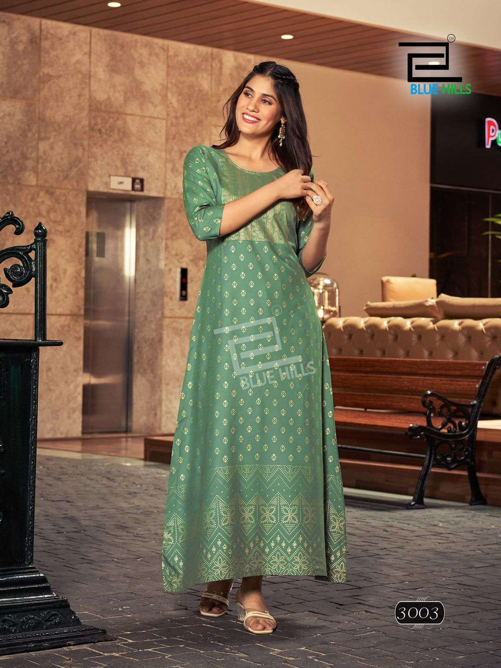 Blue Hills Reels Vol 3 Rayon Foil Print Fancy Long Gown Designer Kurti