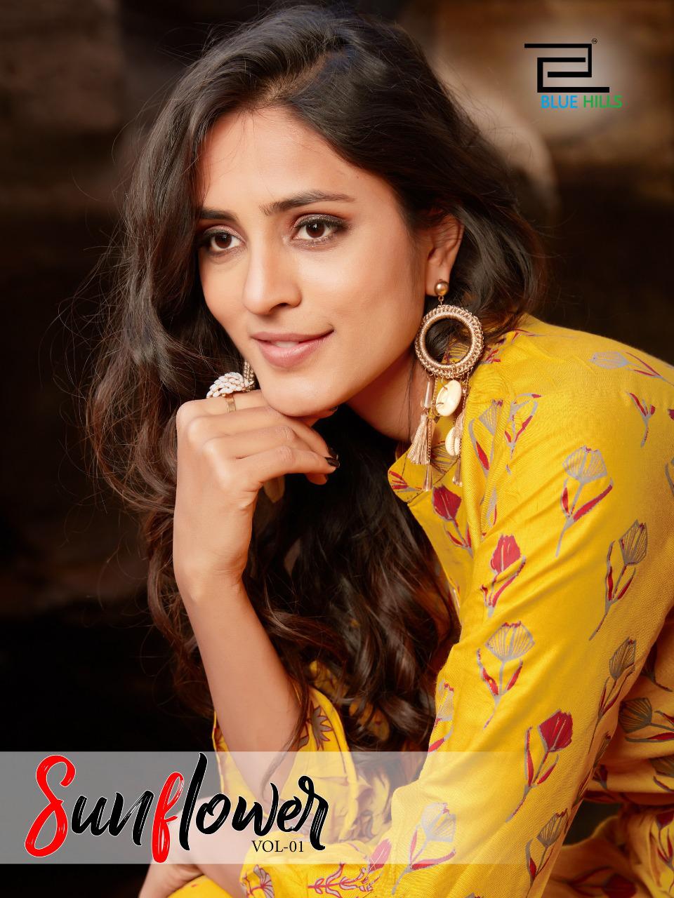 Blue Hills Sunflower VOL 1 Rayon 14 kg print Lenght 52 Ready stock |