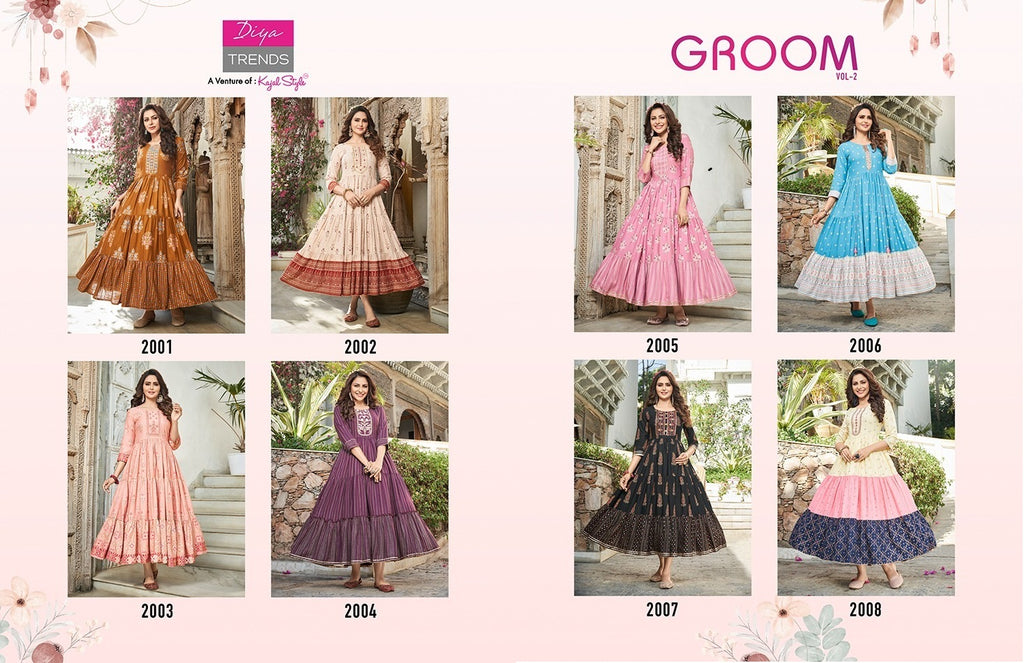 Diya Trends Groom Vol 2 Rayon Designer Long Gown Style Party Wear Kurtis