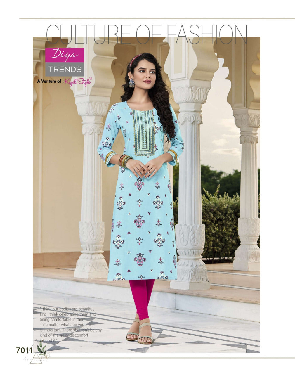 Diya Trends Victoria Vol 7 Rayon With Heavy Printed Work Stylish Designer Casual Look Fancy Kurti