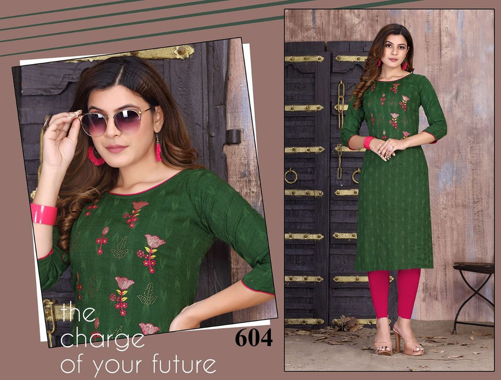 Type : Straight Cut Kurtis Fabric Detail : 14 Kg Unique Embosse Rayon Embroidery N Handwork Stone Length – 44 Inch Size :- L XL XXL |