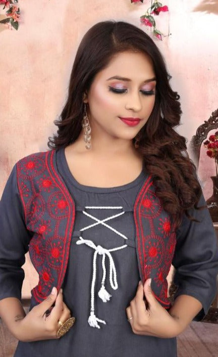 Fabric Details : Attached Embroidery Jacket Size : L XL 2XL Fabric : Heavy Rayon |