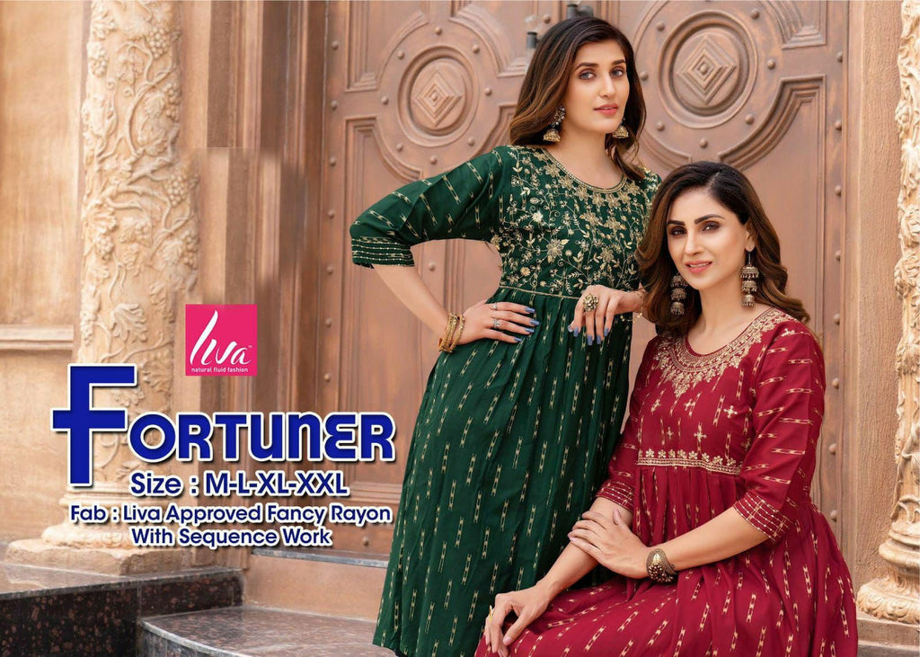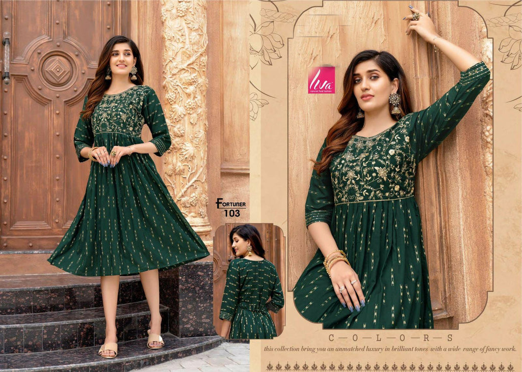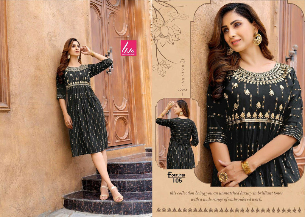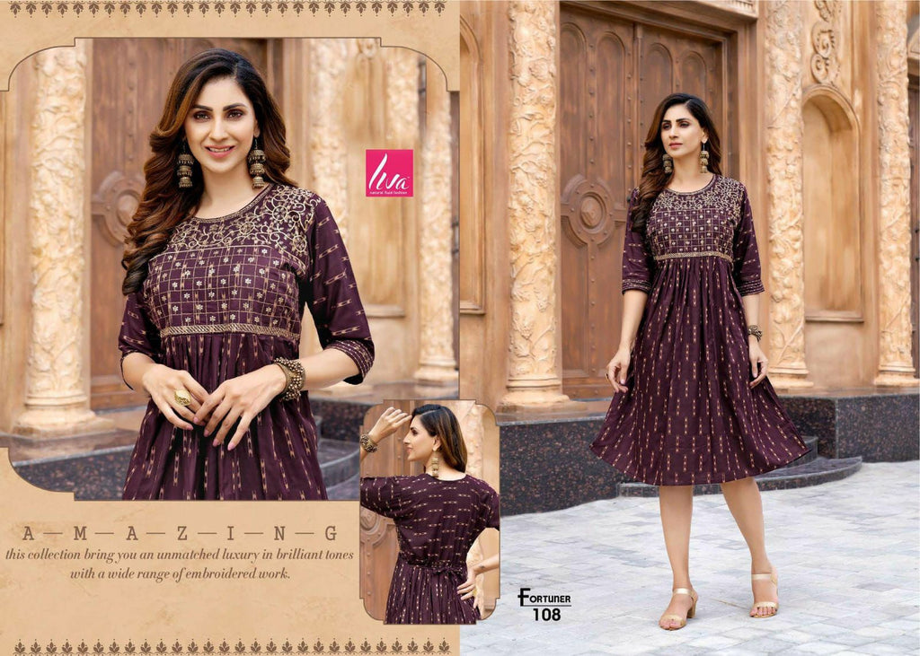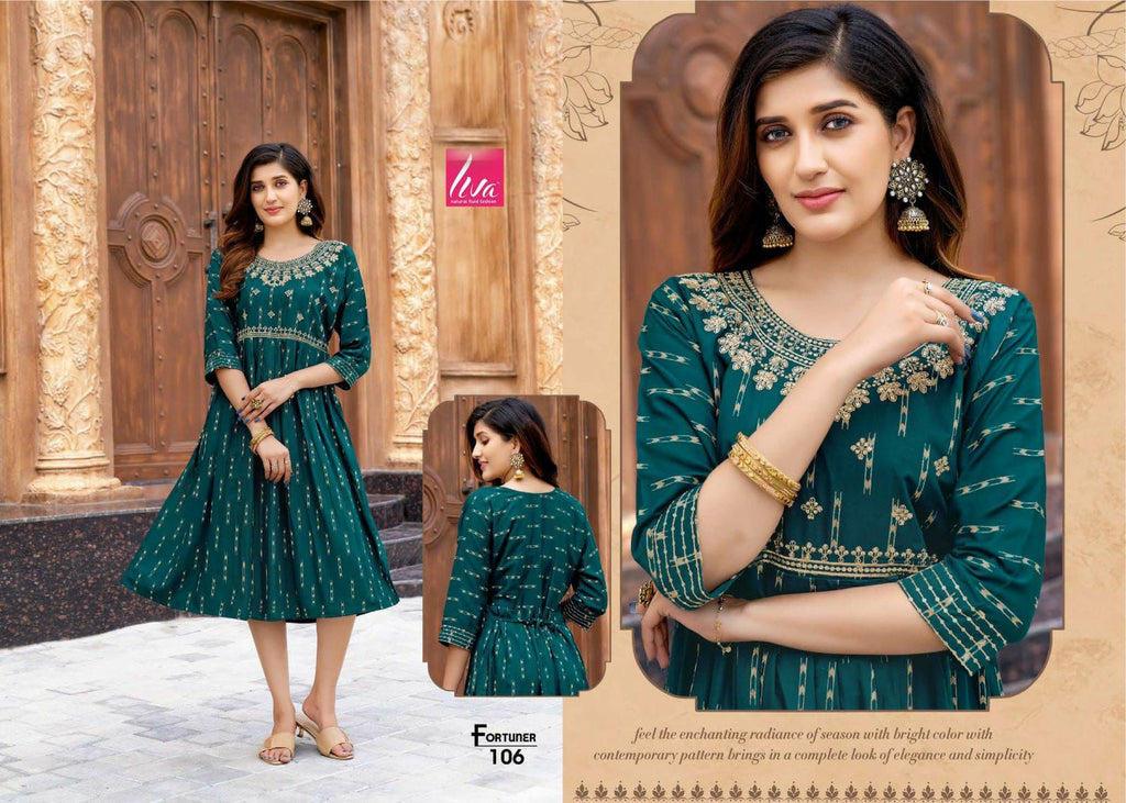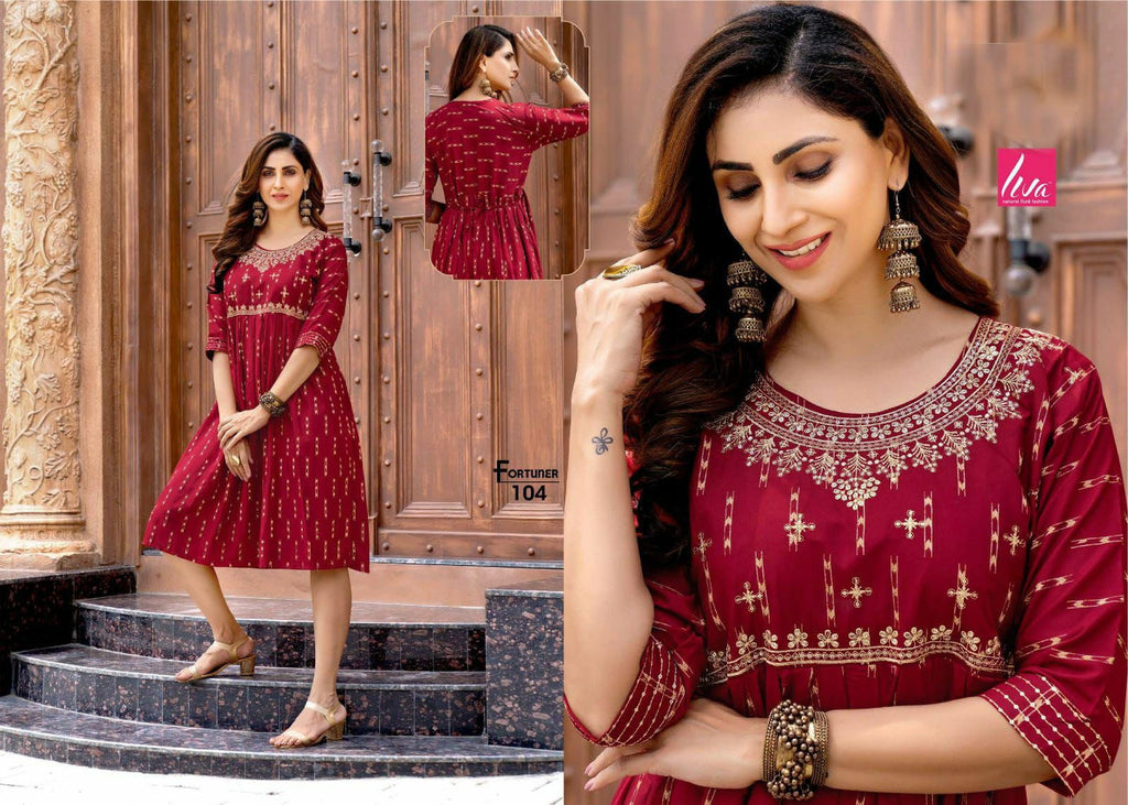 Golden Fortuner Rayon Fancy Designer Party Wear Kurtis