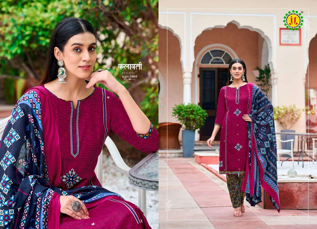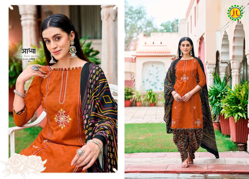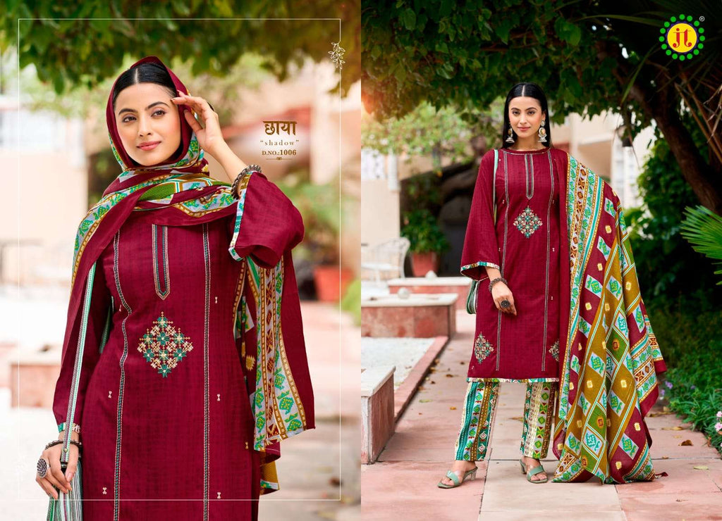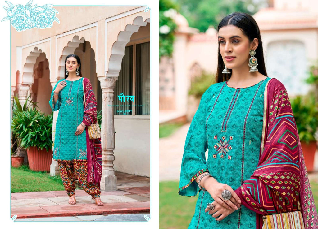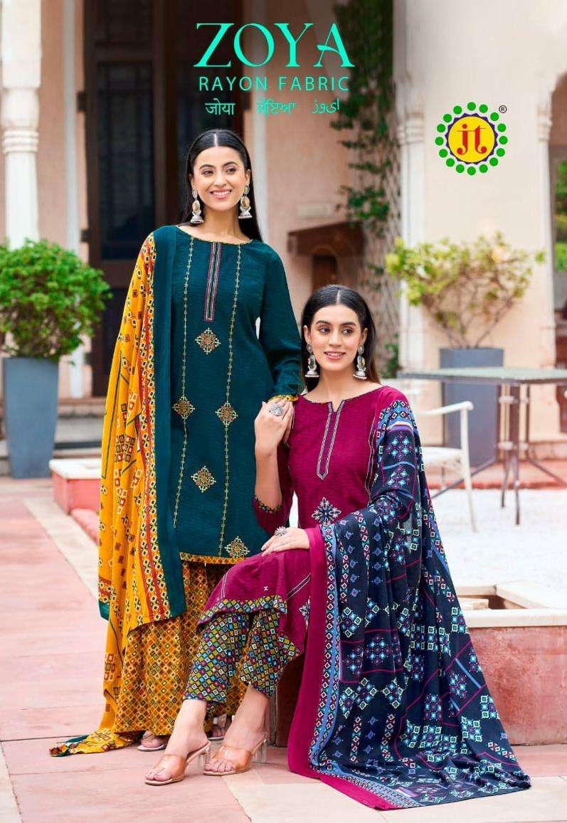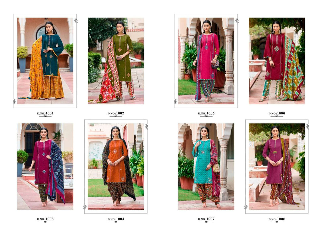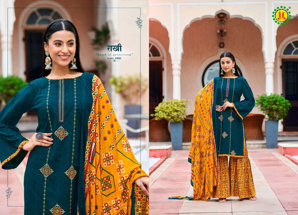 top: rayon poplin fabric with embroidery work ( 2.30mtr) bottom: rayon poplin printed ( 2.30mtr) dup: rayon print dupatta ( 2.25mtr) singal piece pouch packing rich colours combination |