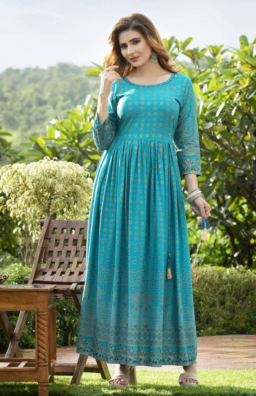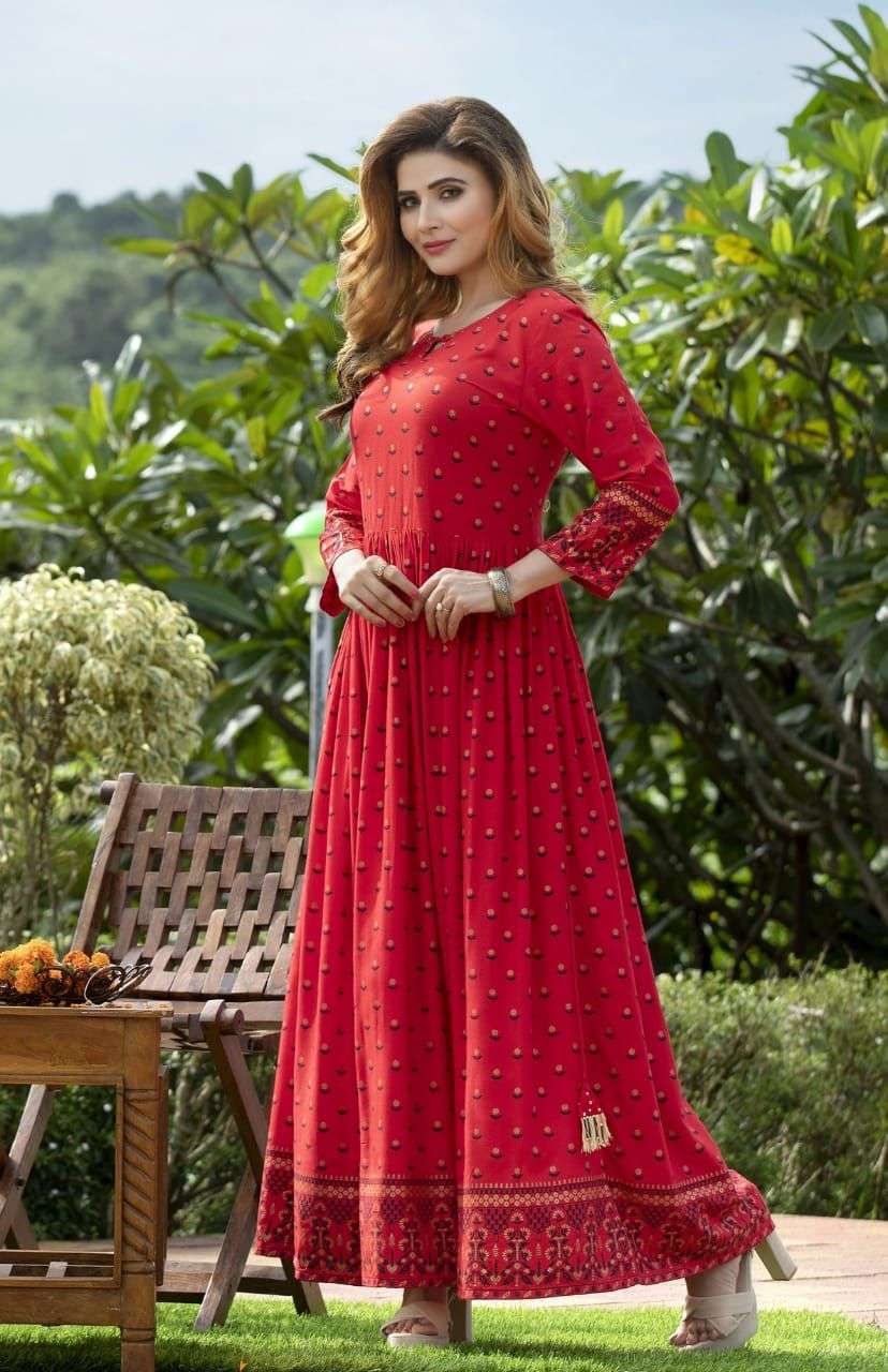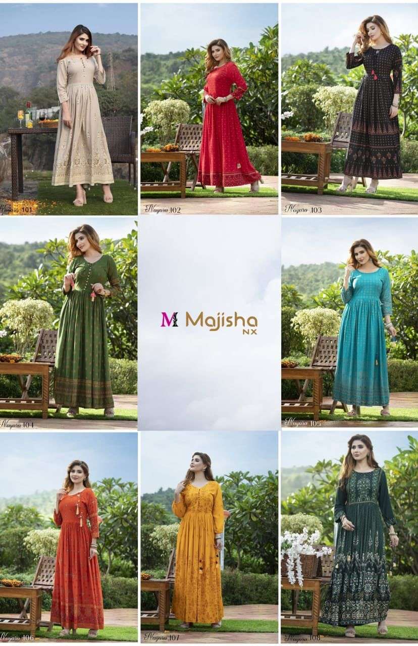 Majisha Naraya Vol 1 Rayon With Foil Print With Hand Work Stylish Designer Wear Kurti