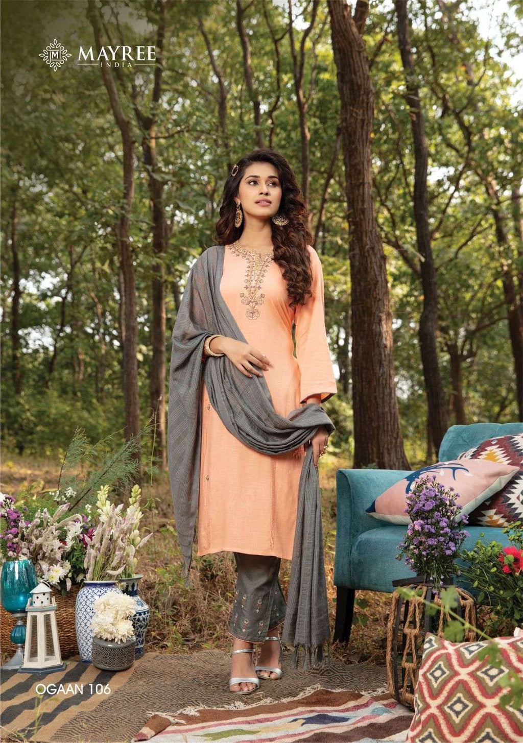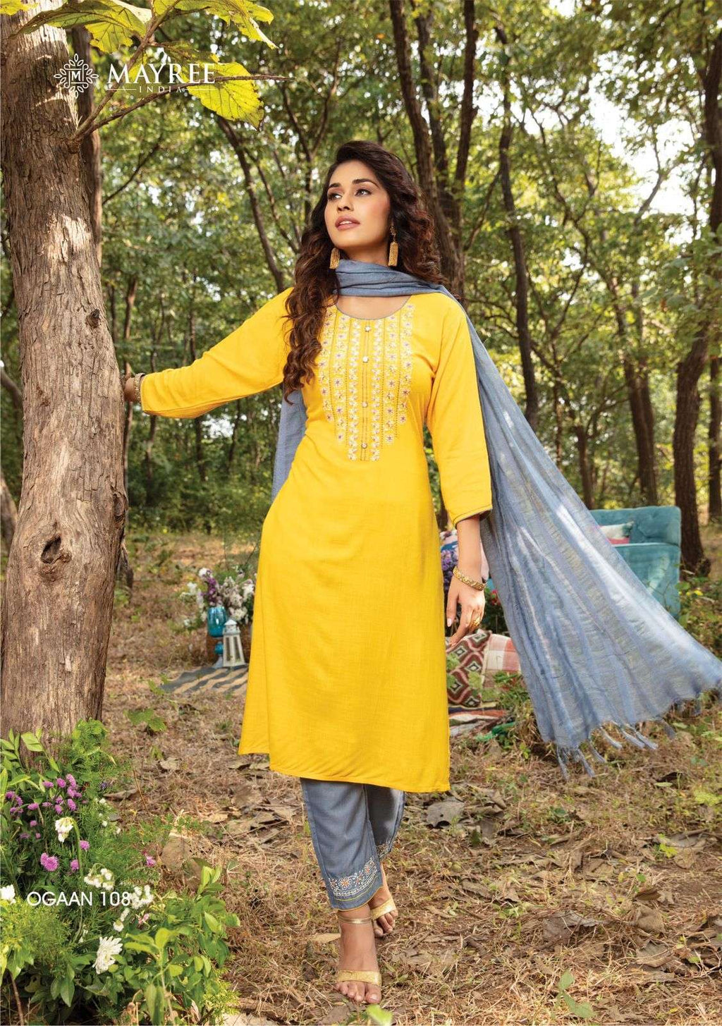 Mayree India Ogaan Rayon Fancy Embroidered Festive Wear Kurtis With Dupatta & Bottom