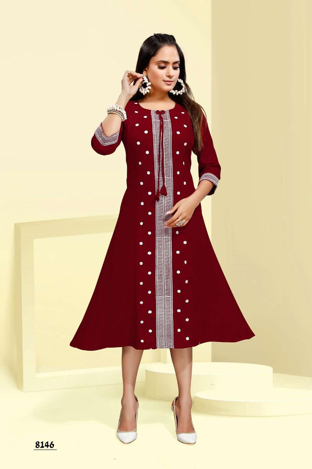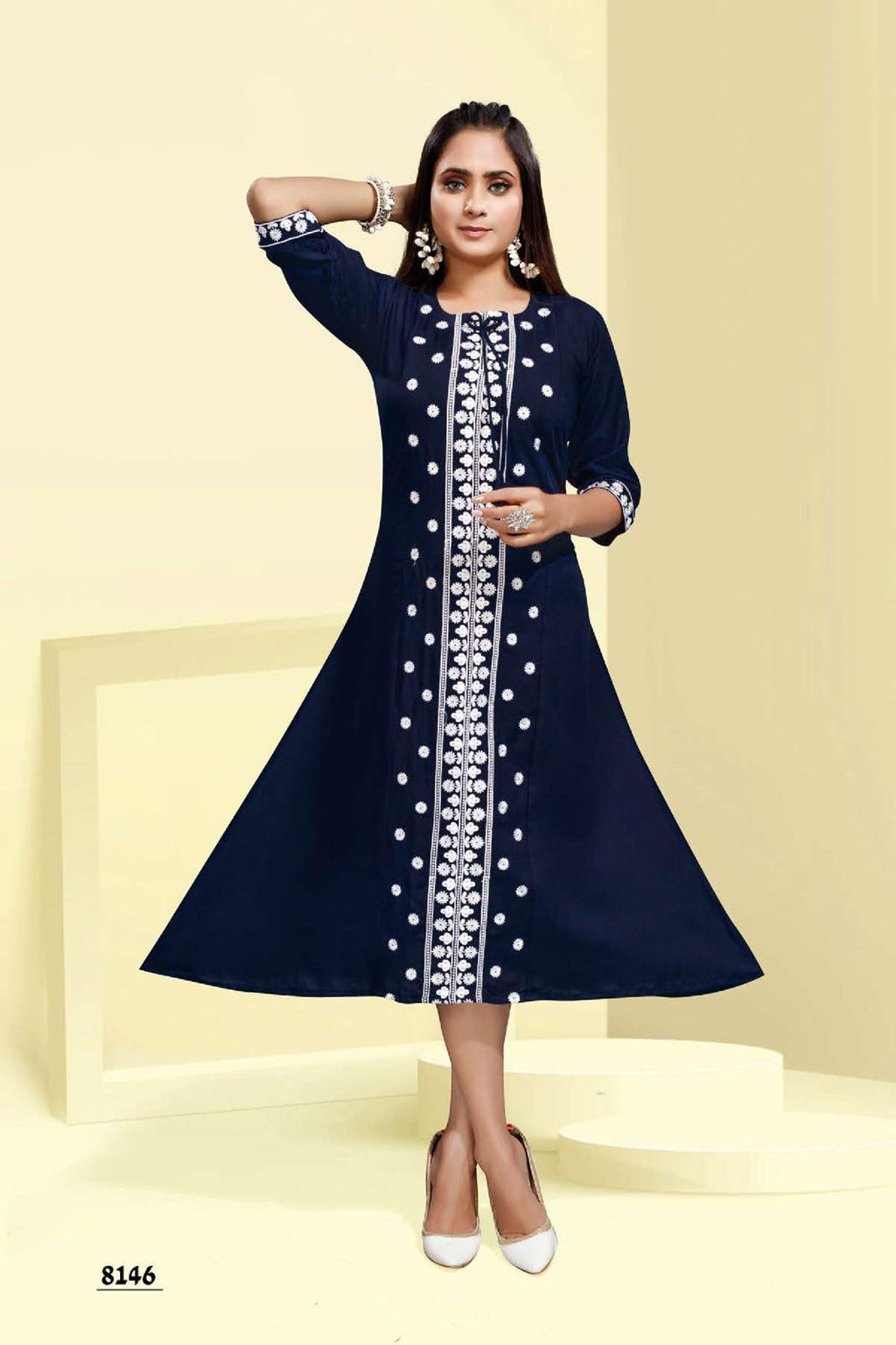 Mf Lata Dno 8146 Rayon With Hwavy embroidery Work Stylish Designer Party Wear Kurti