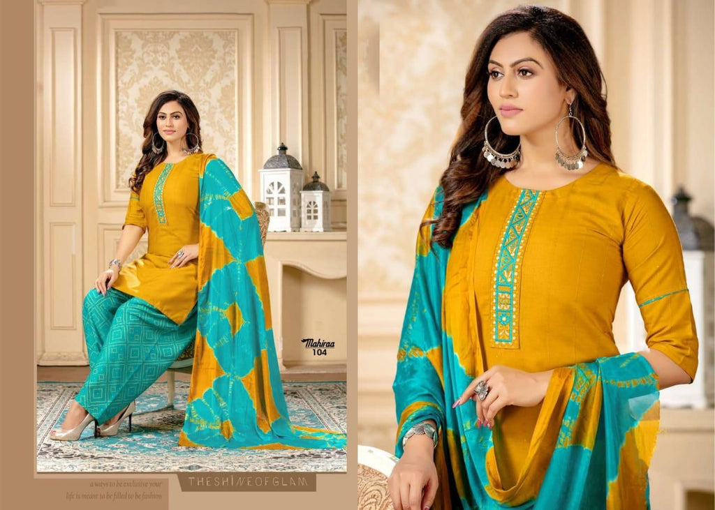 Fabric Details : Top :-Heavy Fancy Rayon Patiyala :- Heavy Rayon Print With Shibori Dupatta Size :- .M.L.XL.XXL |
