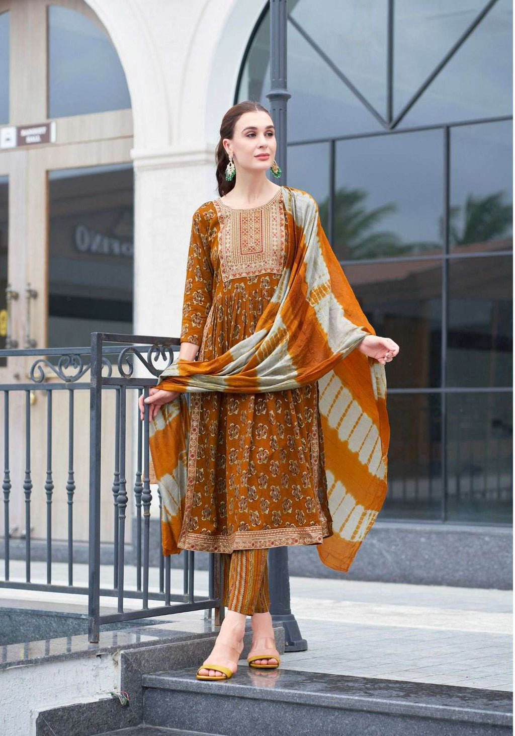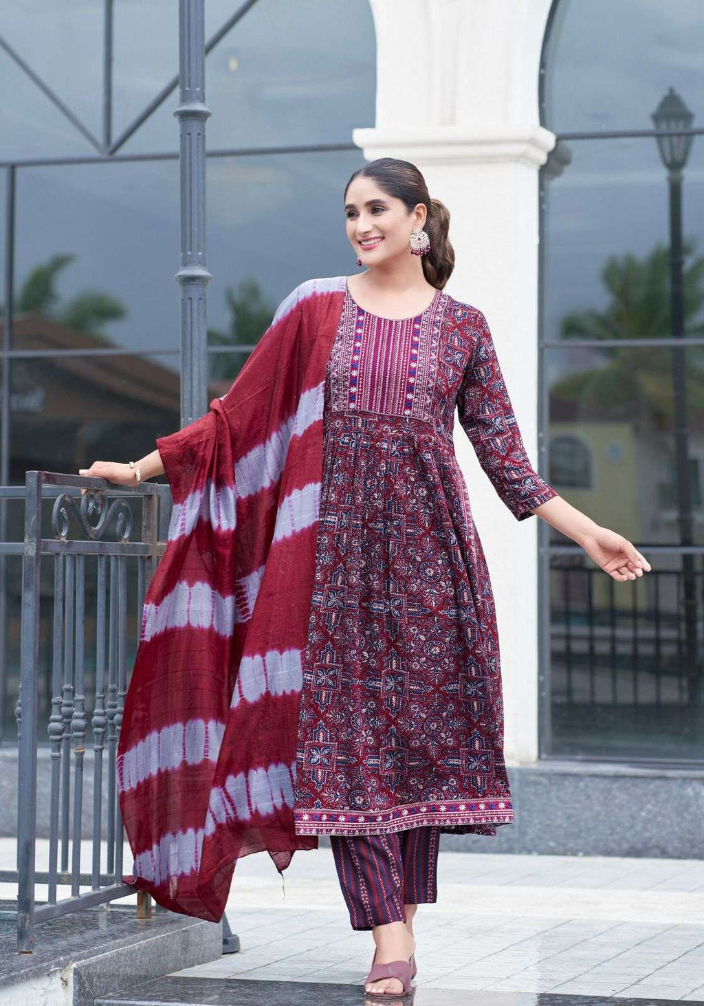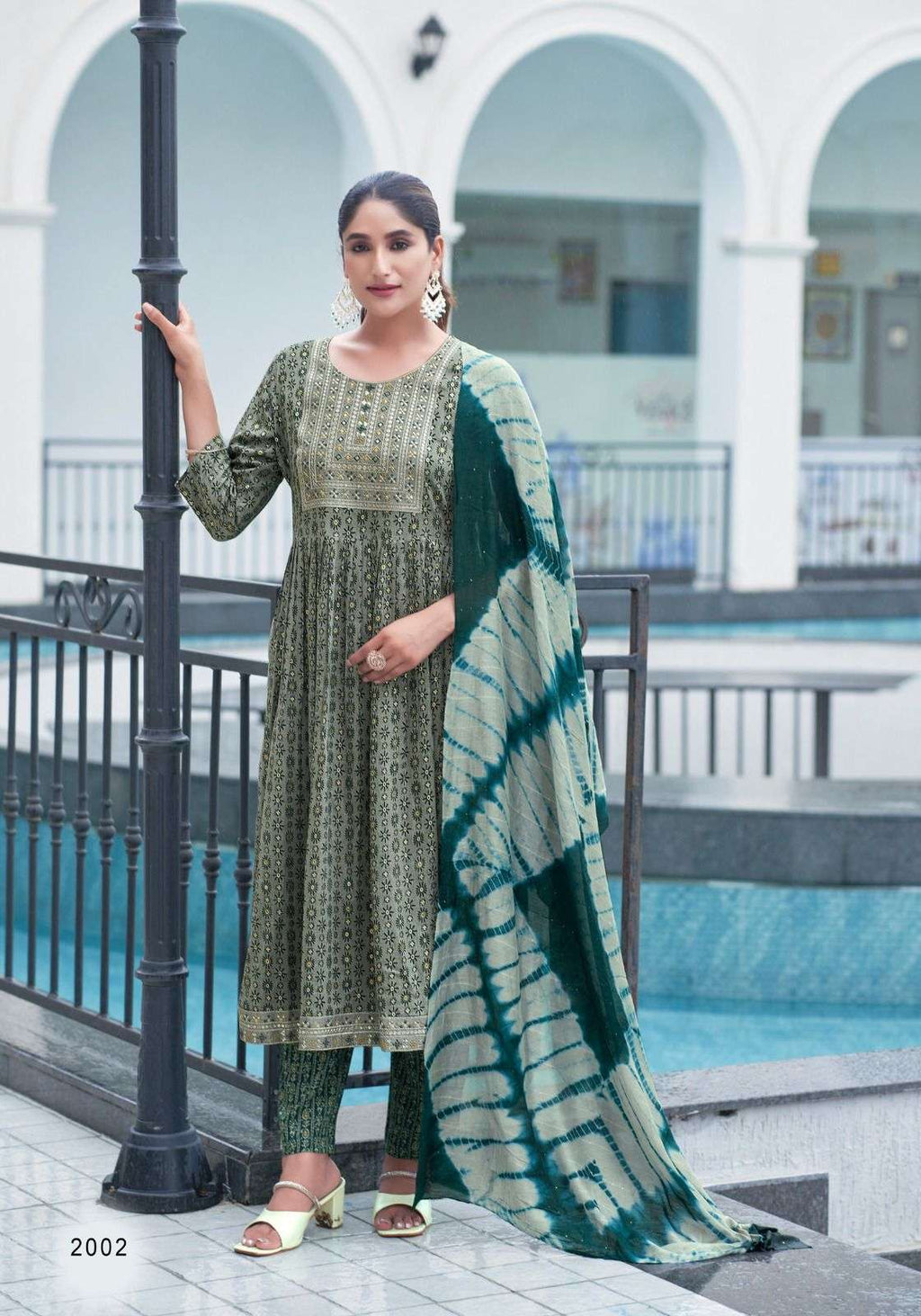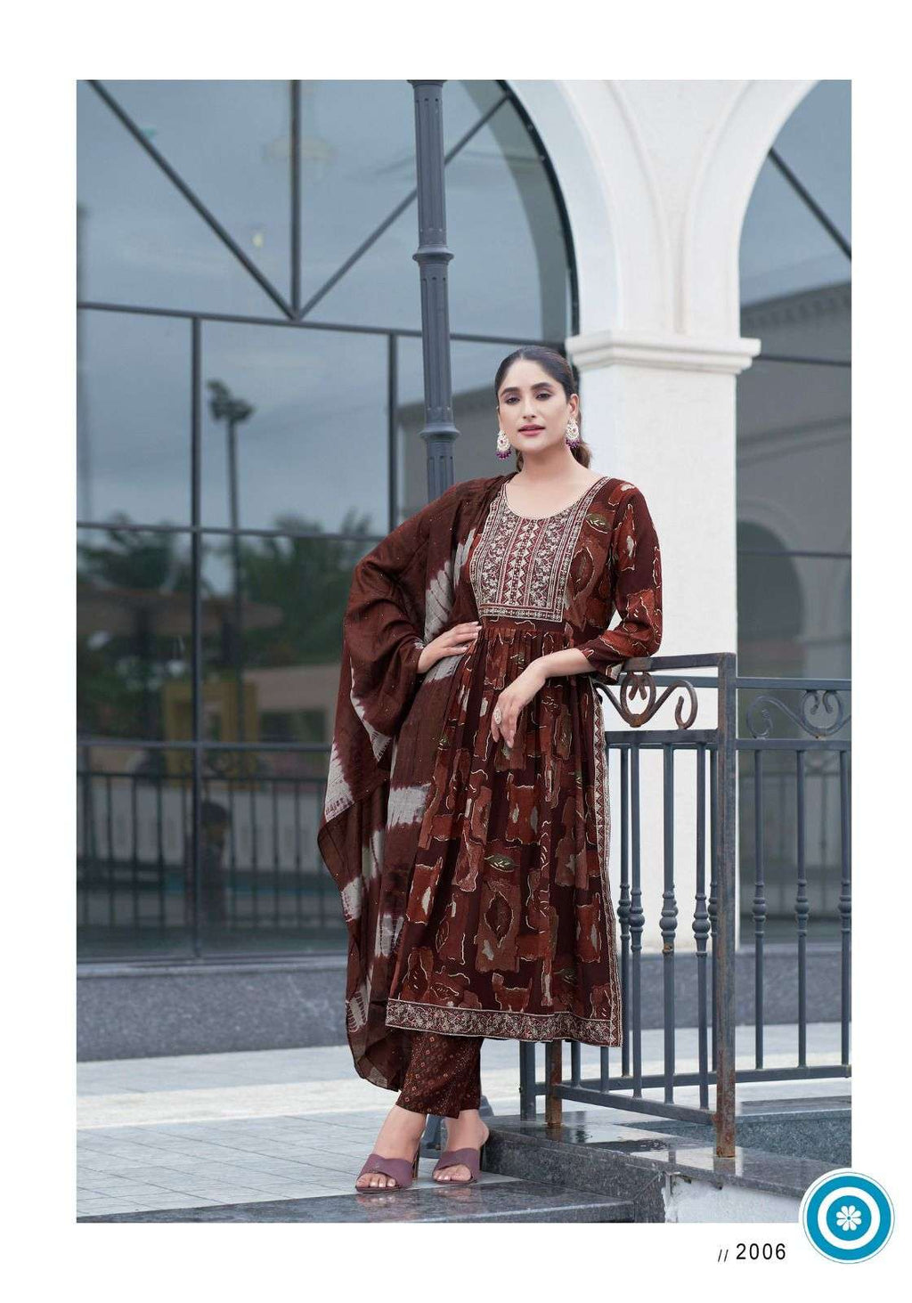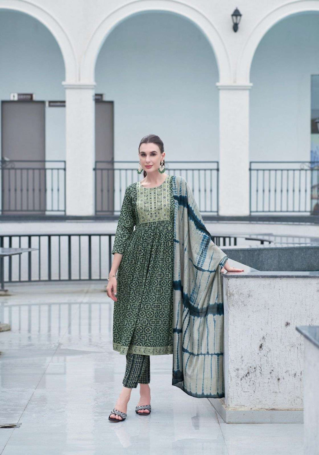 Mystic 9 Black Beauty Vol 2 Rayon Foil Print Nyra Cut Casual Wear Kurti Pant Dupatta Set
