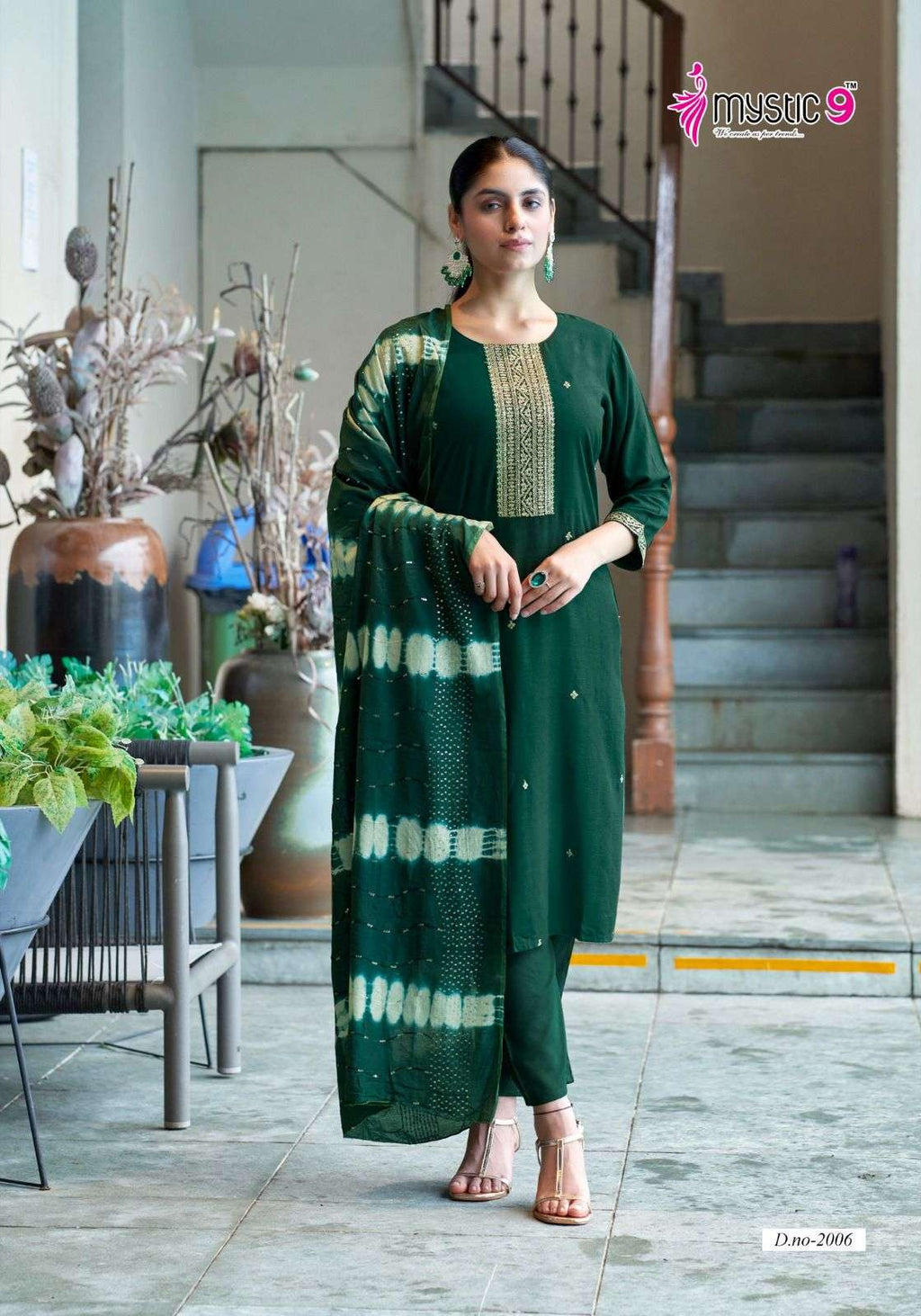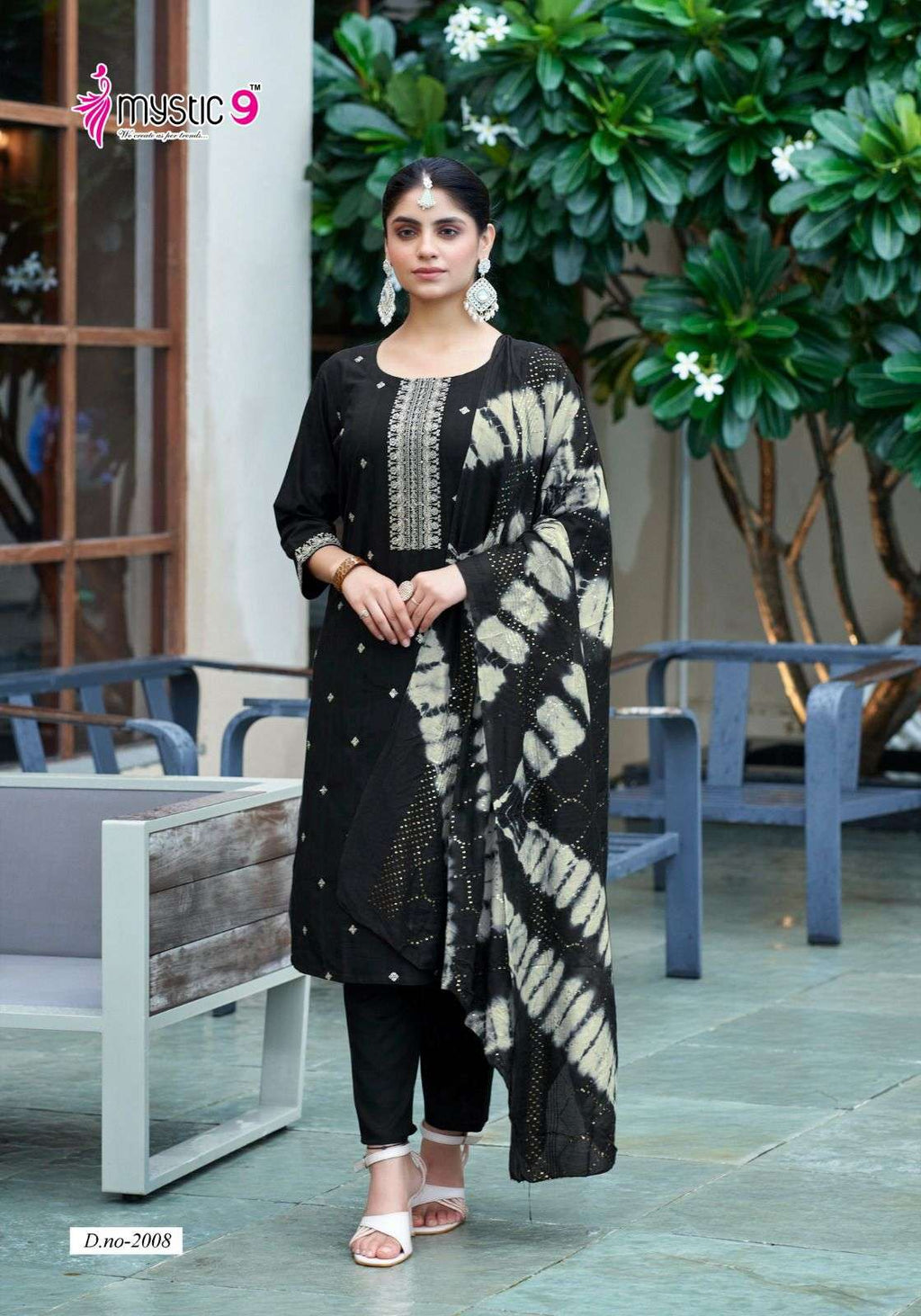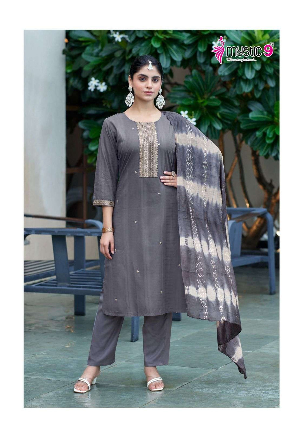 Mystic 9 Dolly Vol 2 Rayon Embroidery Casual Wear Kurti Pant Dupatta Set