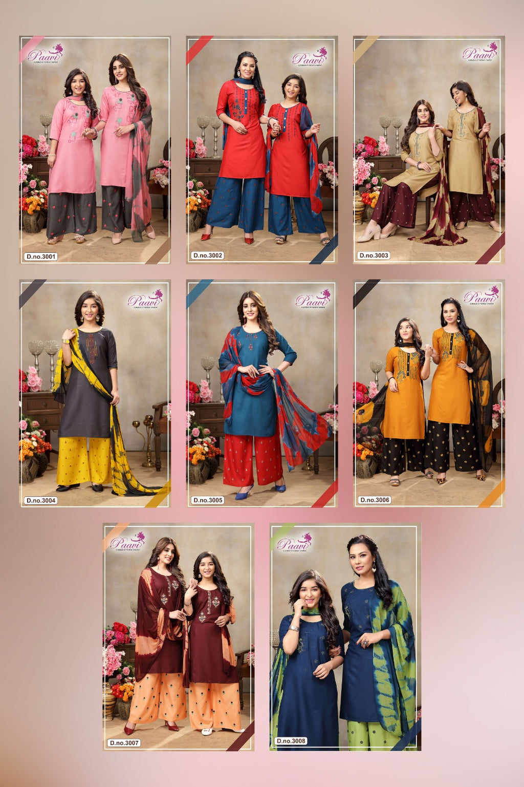 Paavi Creation Aalokhi Vol 3 Rayon Fancy Work Kurti With Plazzo & Dupatta