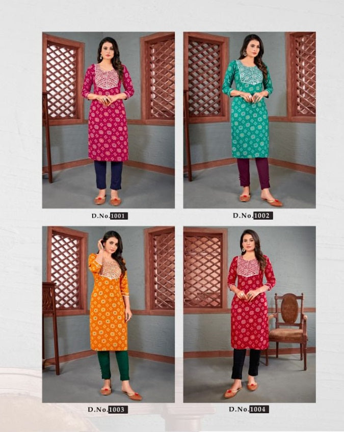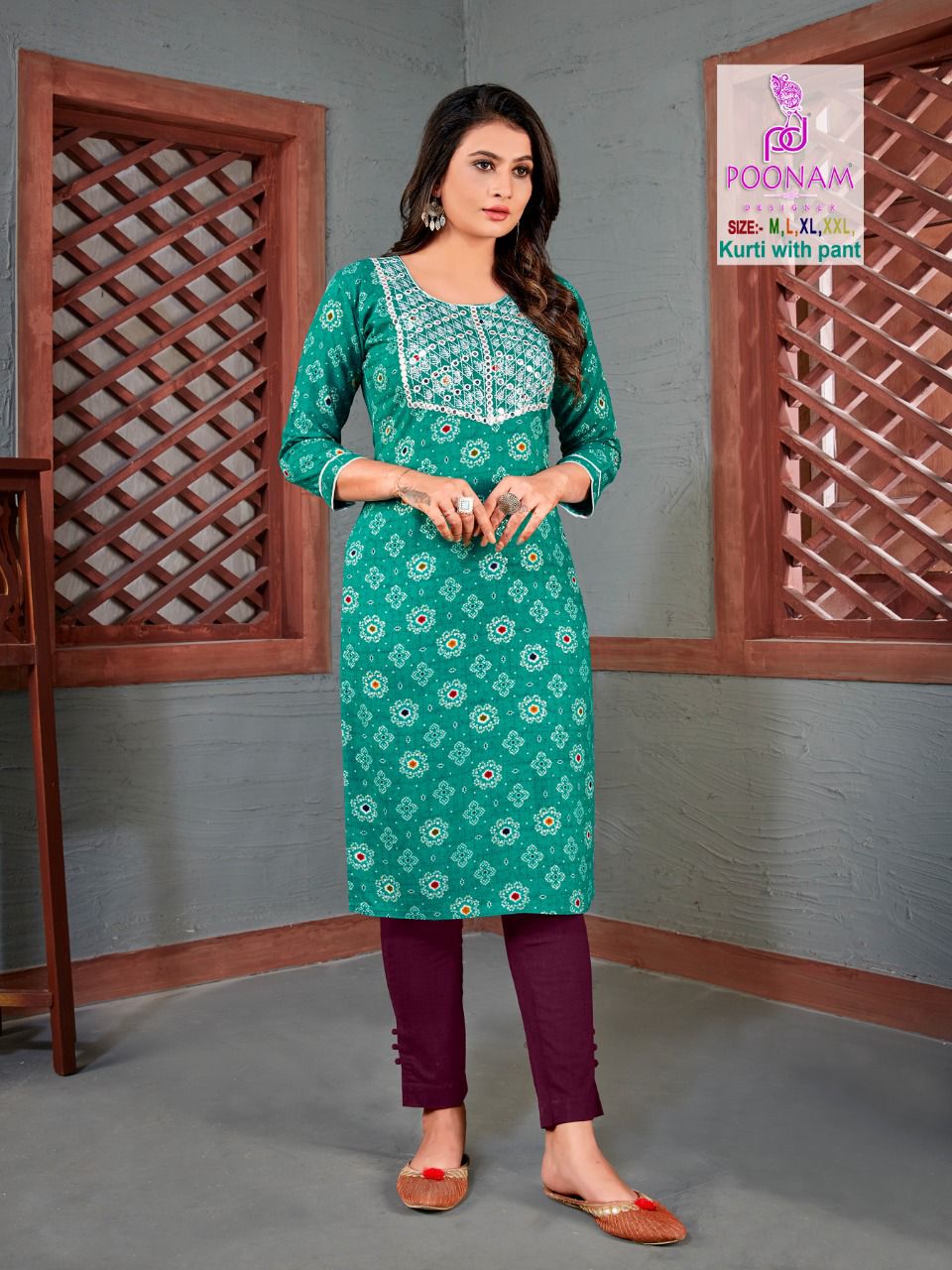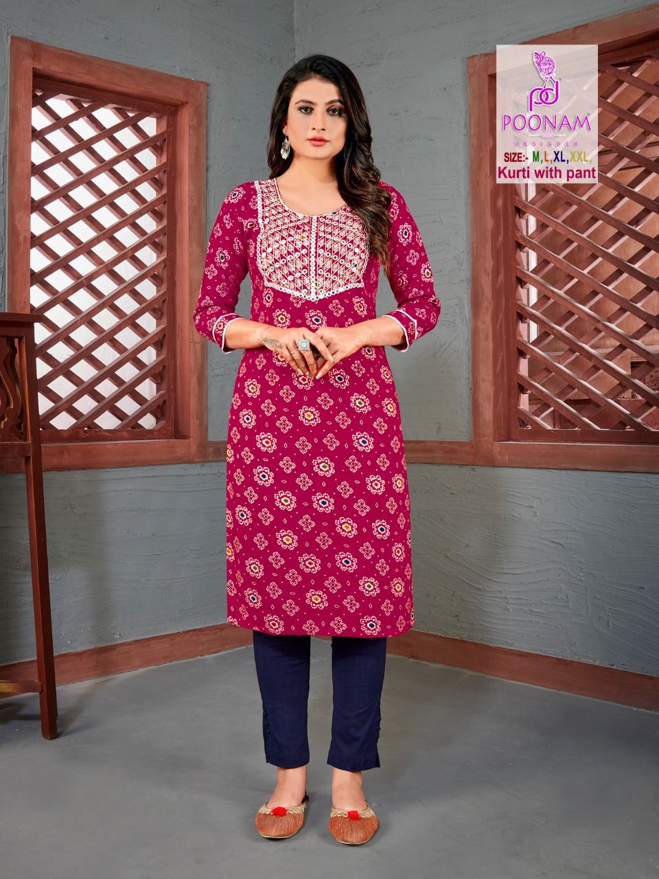 Details Kurti – Premium Rayon Print ,Mirror & White Embroidery Pant – Cotton Lycra. – M,L,XL, XXL. |