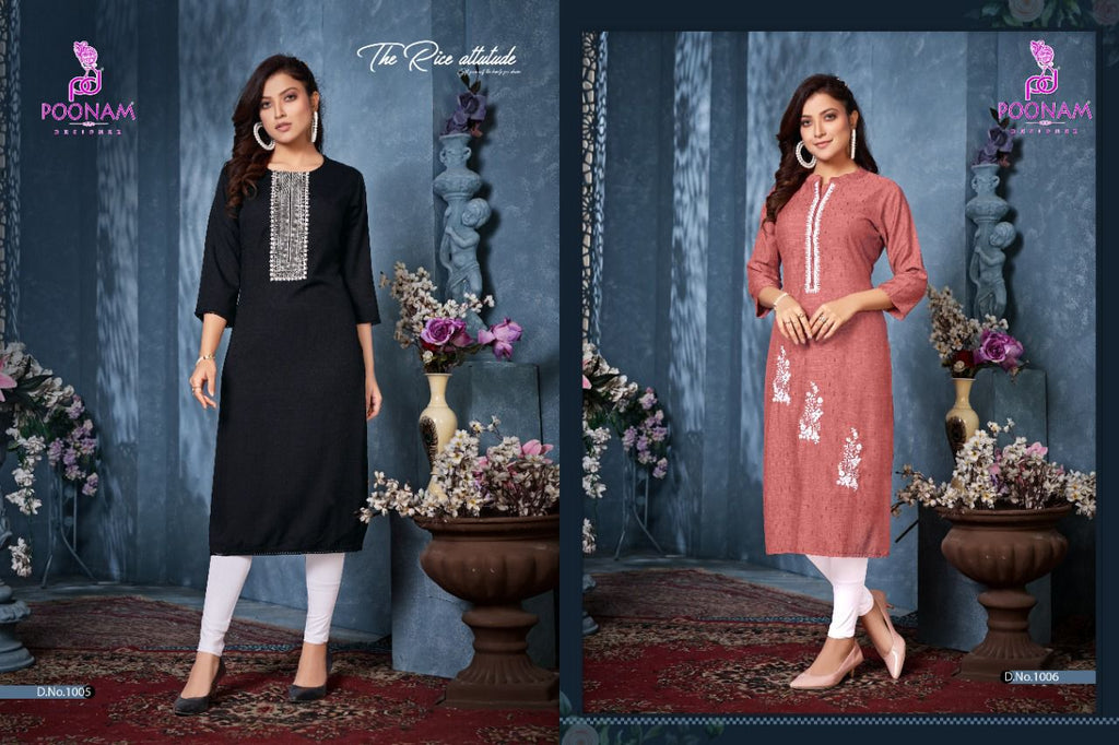 Poonam Designer Mayra Rayon Formal Fancy Casual Wear Kurtis