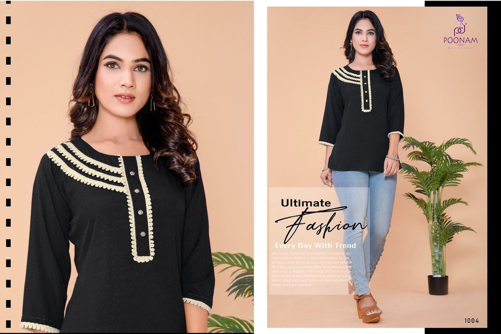 Poonam Designer Ruaab Rayon Fancy Stylish Top Style Office Wear Kurtis