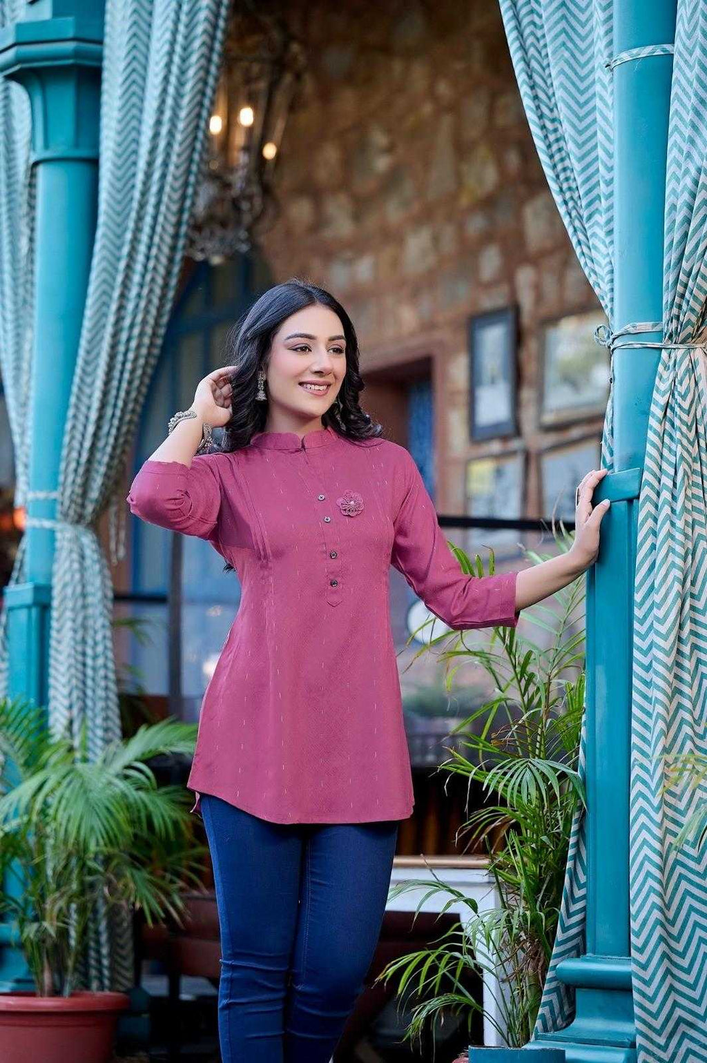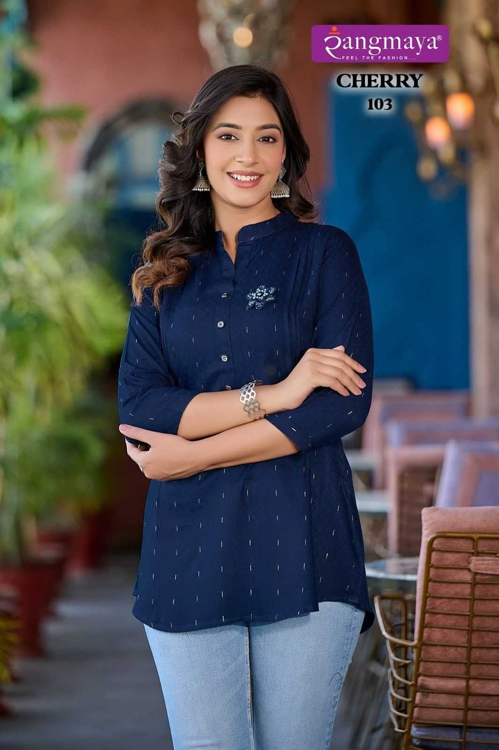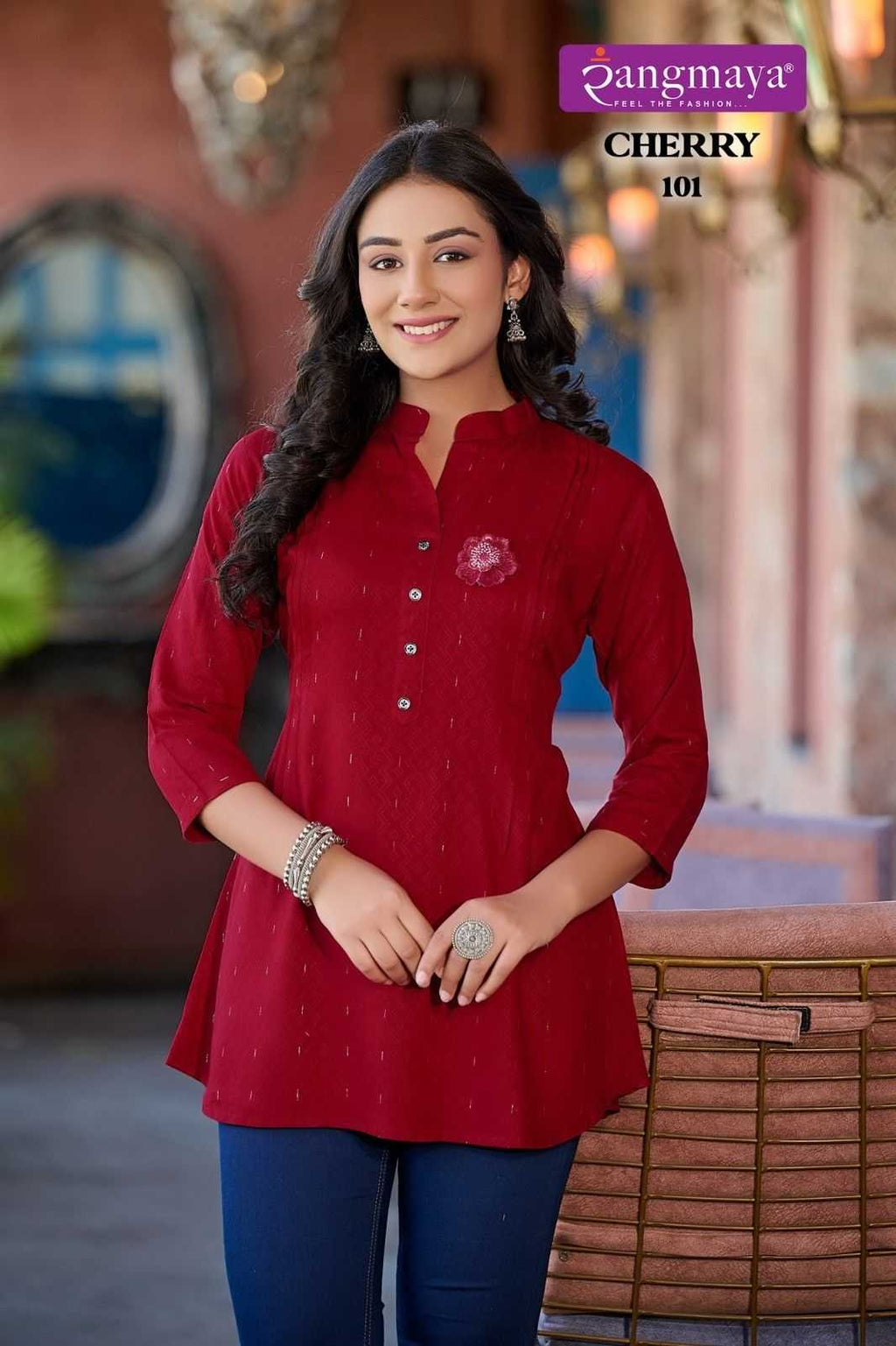 Rangmaya Fashion Cherry Rayon Tunic Short Top For Daily Wear