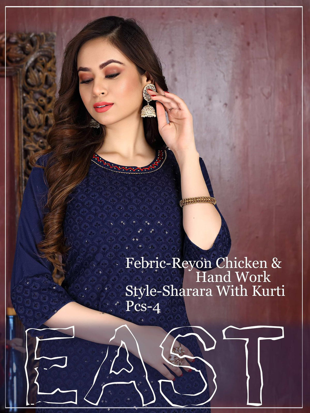 Riya East Chicken Rayon Party Wear Kurtis With Sharara Bottom