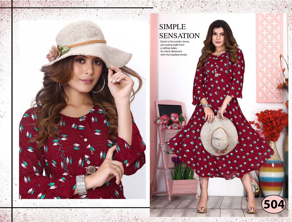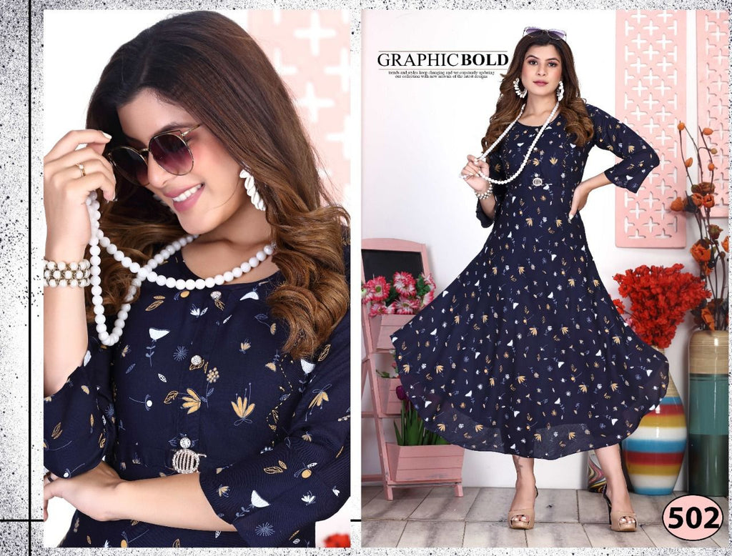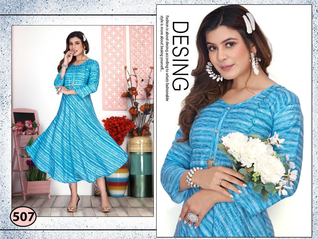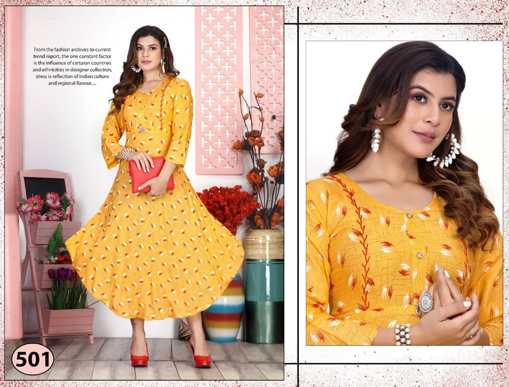 Riyaa Icy Vol 1 Rayon Fancy Printed Frock Style Party Wear Kurtis