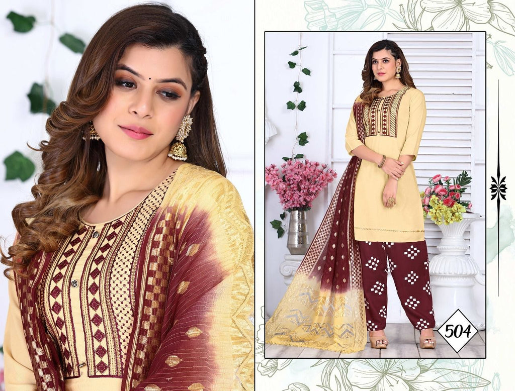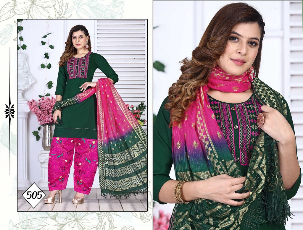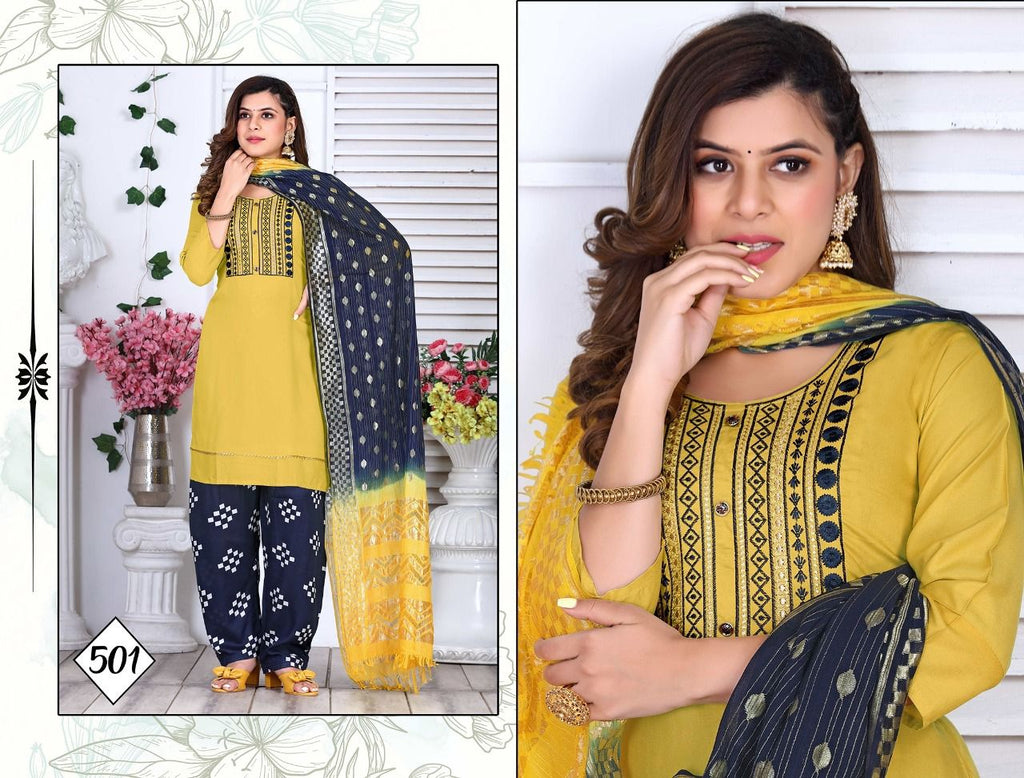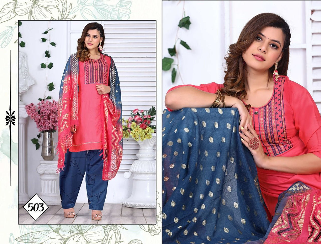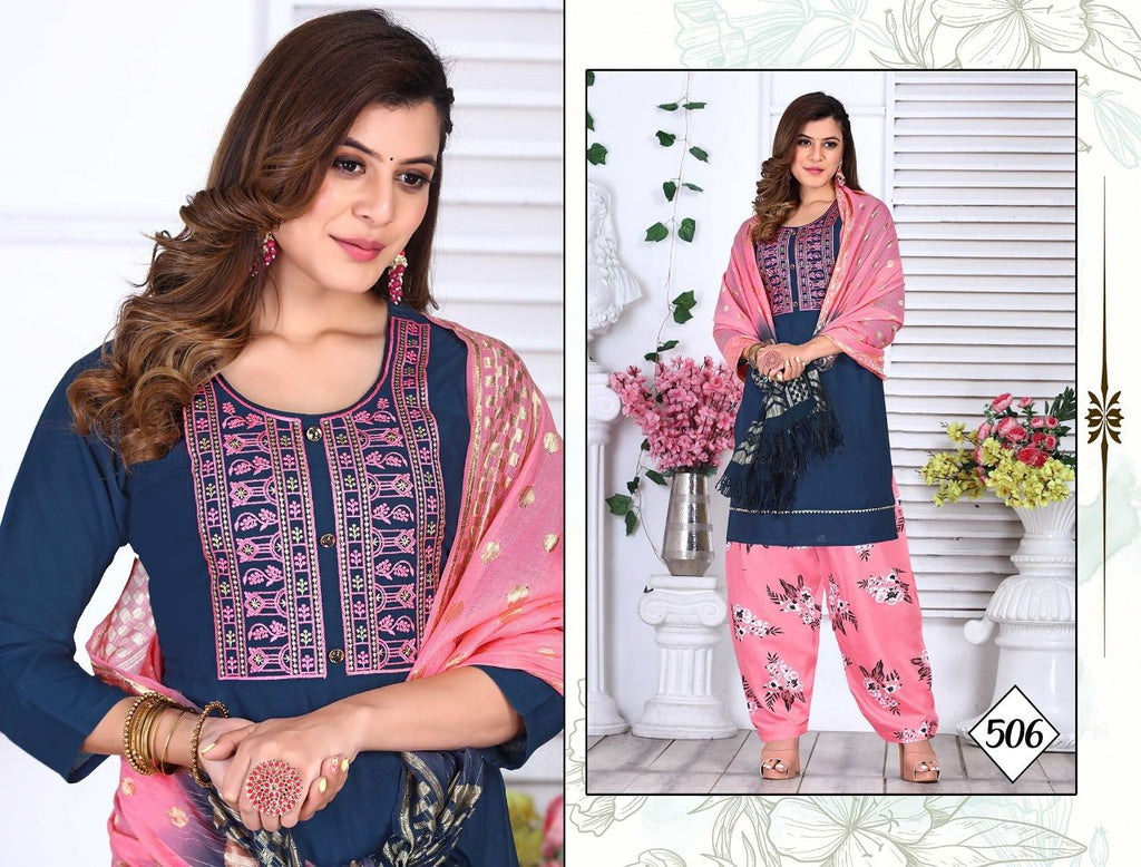 (Top+ Salwar+ Dupatta) Length:- Fabric:- Dupatta: Rasal Cotton 2 Mtr Pattern = Embroidered Style= Straight Size : M. L. XL.2XL. 3XL |