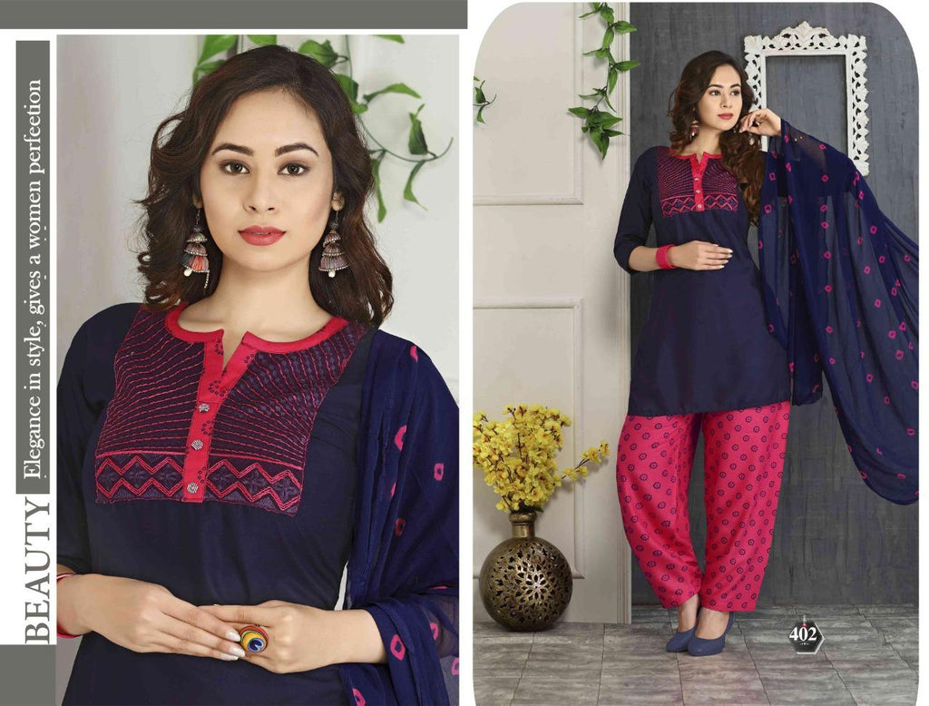 Fabric :- Design :- 06 Pattern :- Embroidered Style :-Kurta +Patiyala + Length:- 40 Inch Kurta Size:- L XL 2XL |