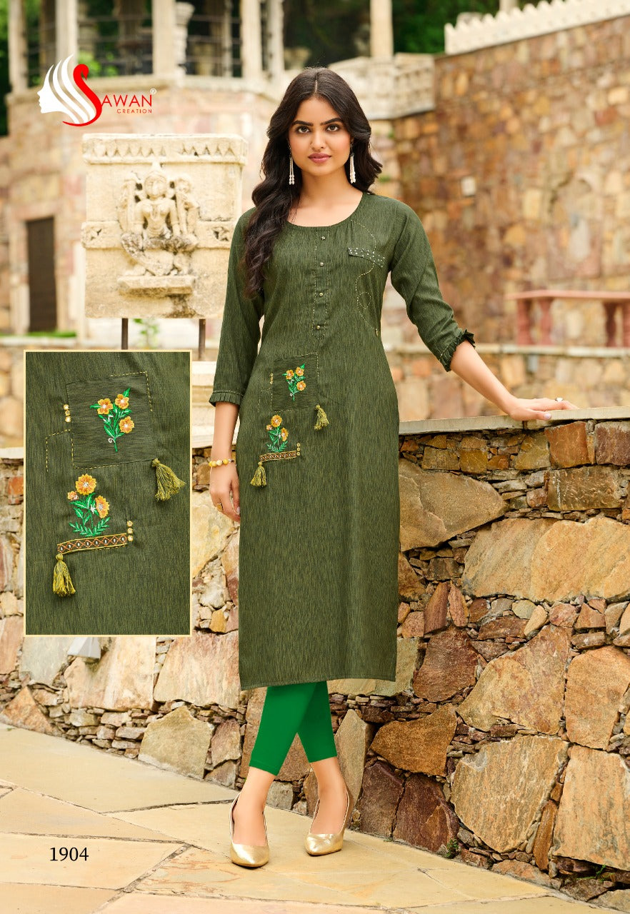 Sawan Creation Honey Vol 19 Rayon Embroidered Fancy Party Wear Kurtis