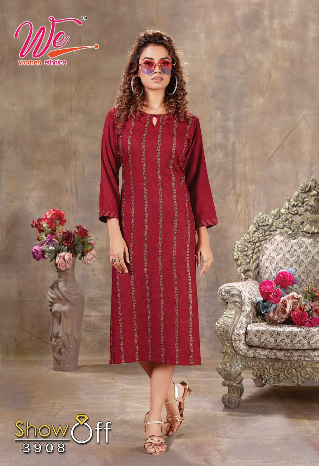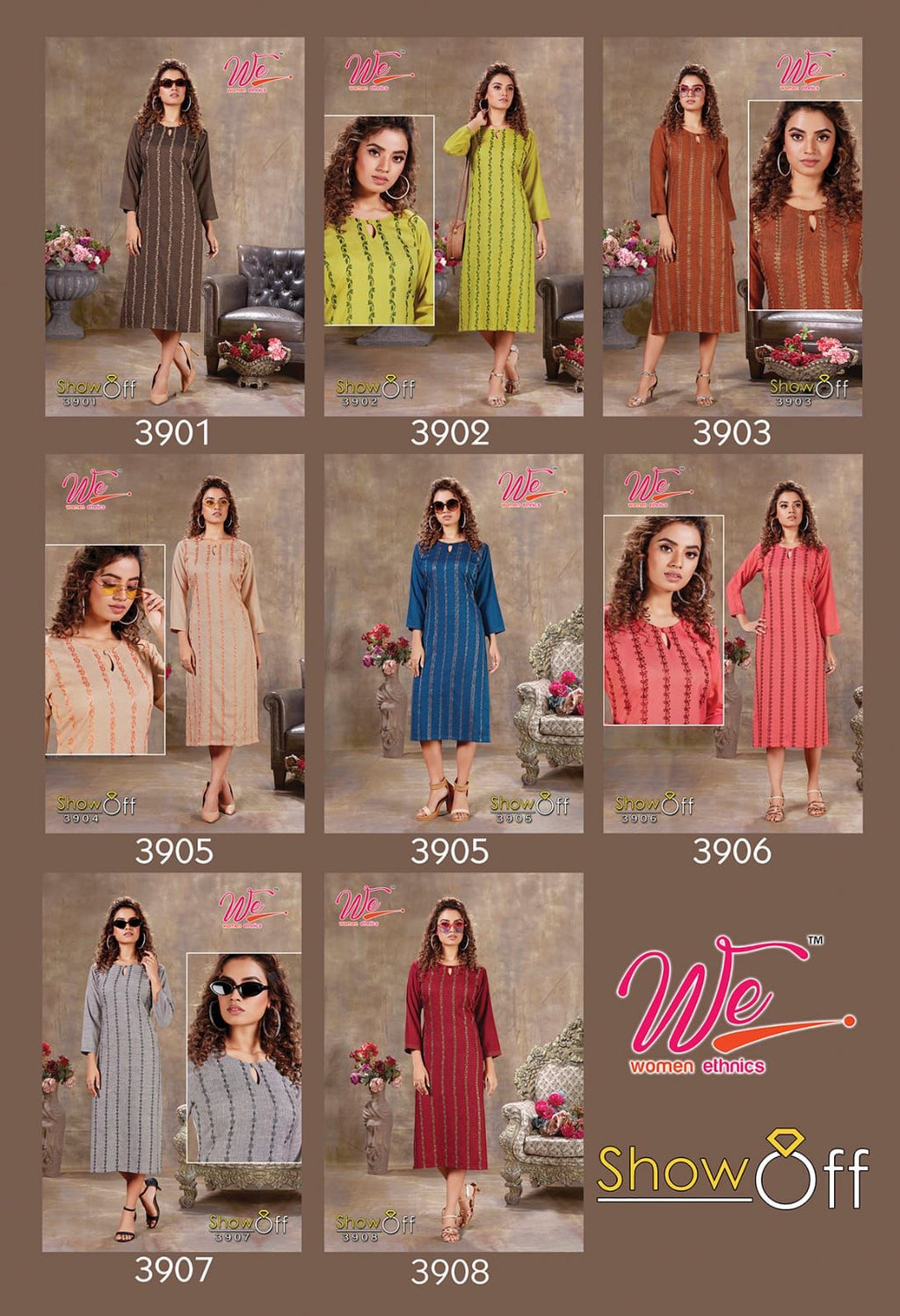 Showoff Dno 3901 To 3908 Heavy Rayon With Fancy Work Stylish Designer Fancy Kurti