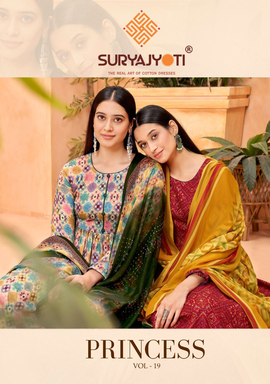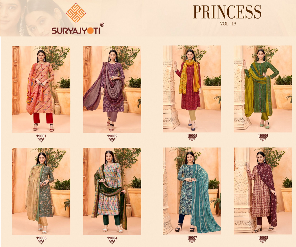 Fabric- TOP:- RAYON PRINT BOTTOM:- SOLID COTTON DUPATTA:- NAZMEEN PRINT CUT:- 2.5-2.5-2.25 |