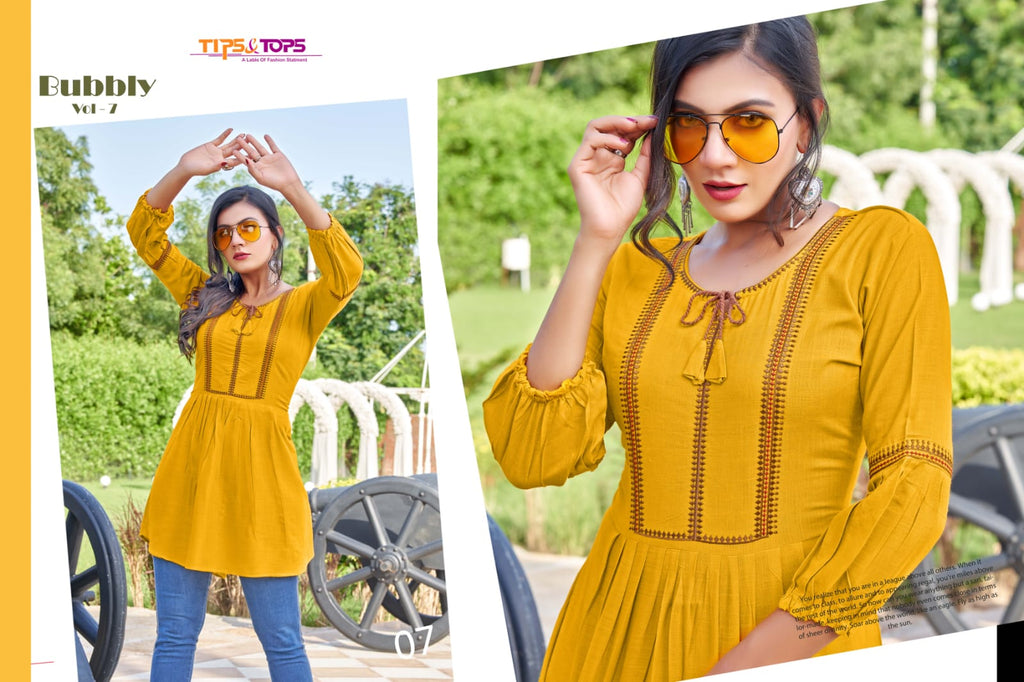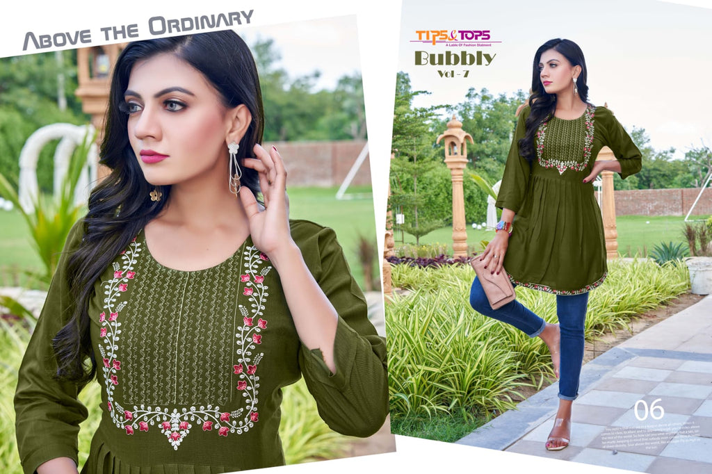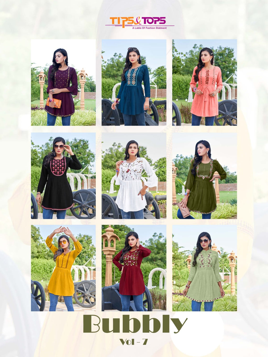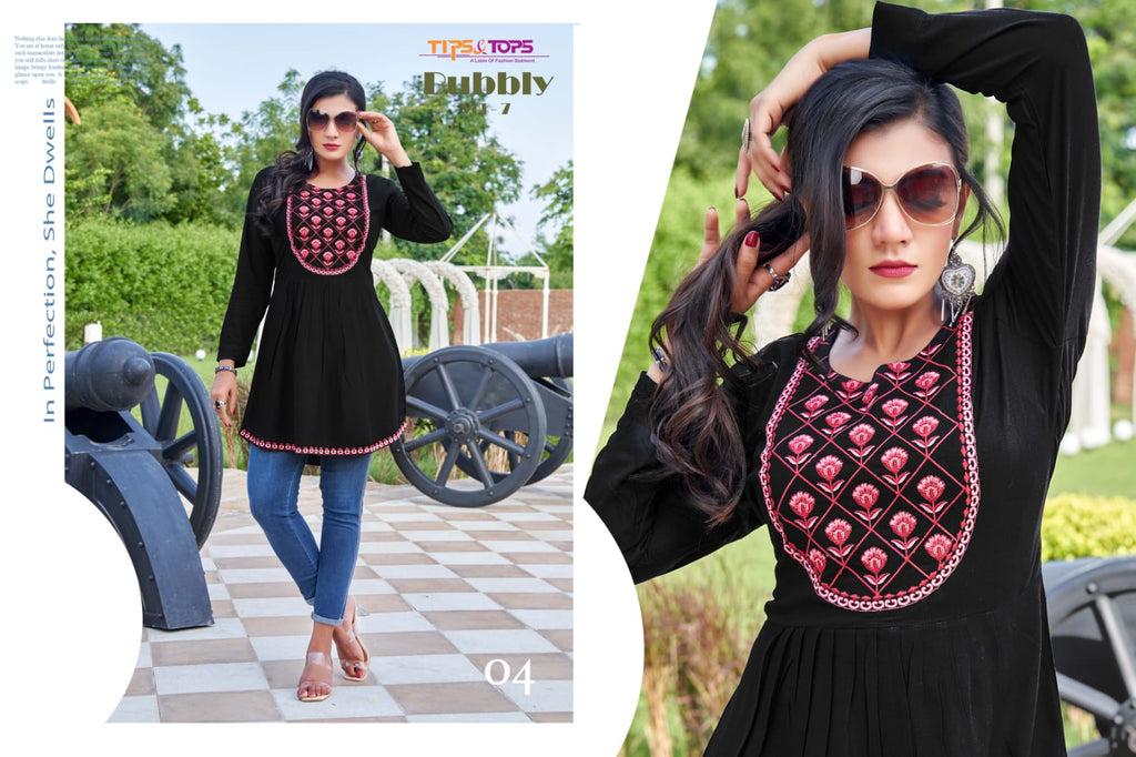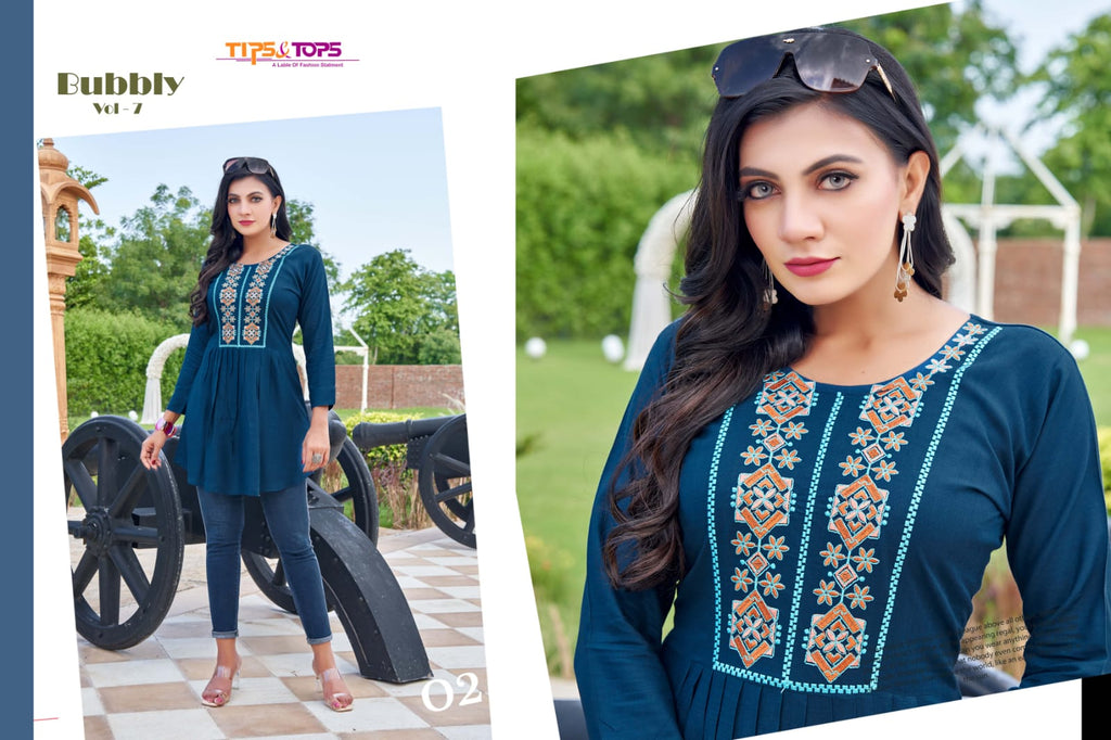 Tips & Tops Bubbly Vol 7 Rayon With Embroidery Work Fancy Western Top stylish Designer Kurti