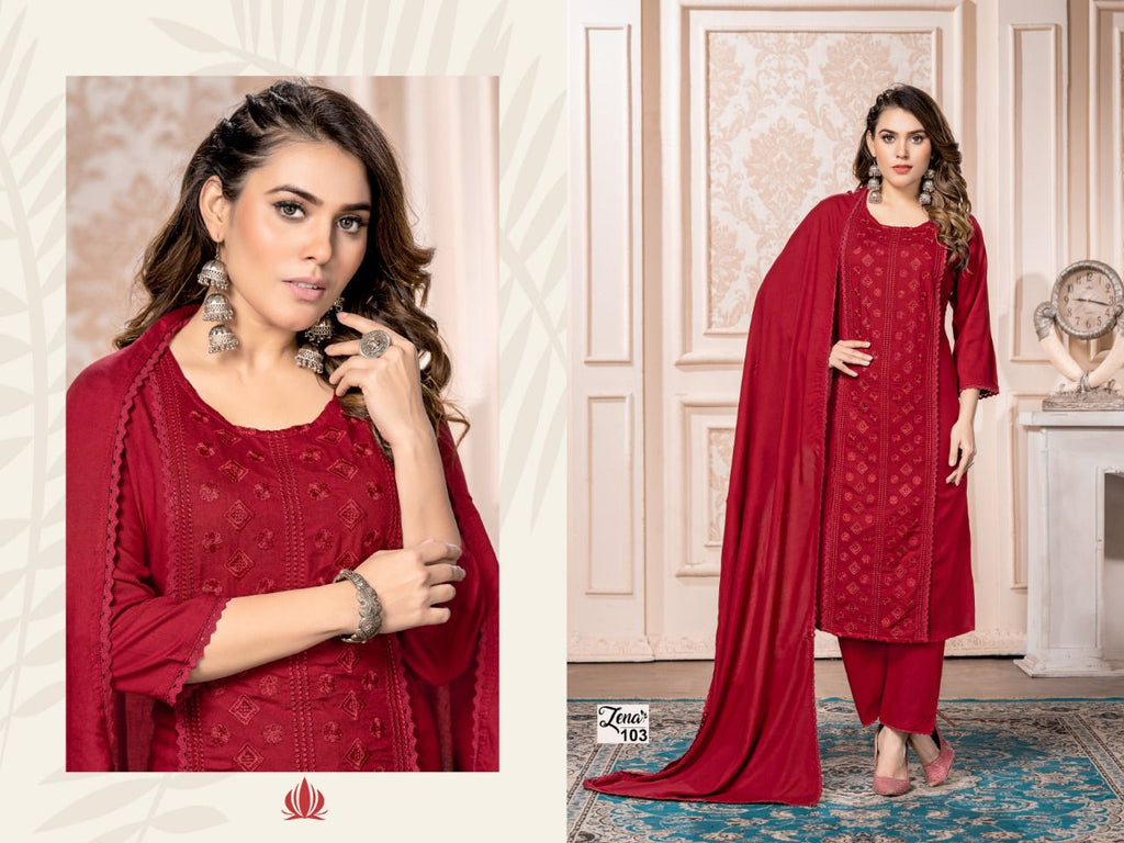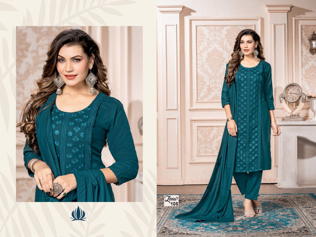 Trendy Zena Rayon With Heavy Embroidery Work Stylish Designer Fancy Look Salwar Kameez