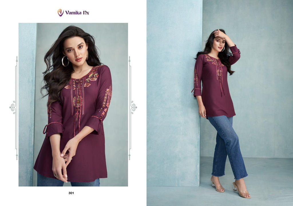 Vamika Nx Jaara Heavy Rayon Embroidery Work Casual Wear Kurti