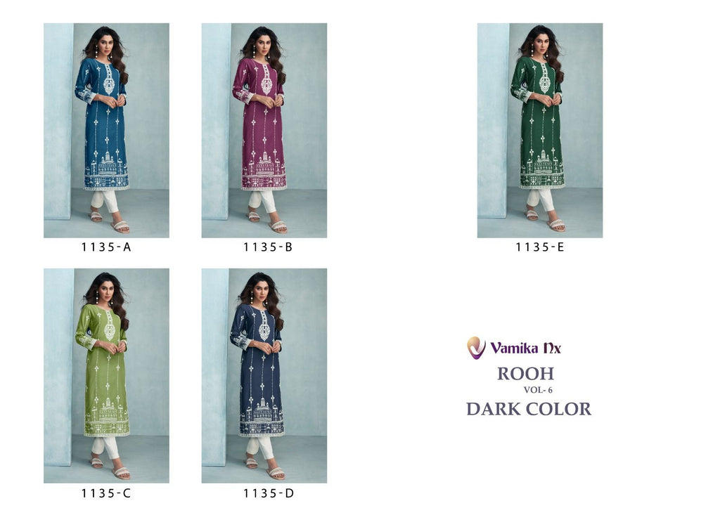 Vamika Nx Rooh Vol 6 Dark Color Viscose Rayon Fancy Designer Kurti With Pant Collection