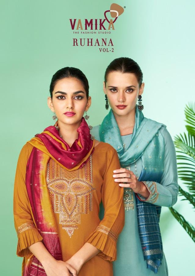 Vamika Ruhana Vol 2 Rayon Designer Festive Wear Kurtis With Bottom & Dupatta