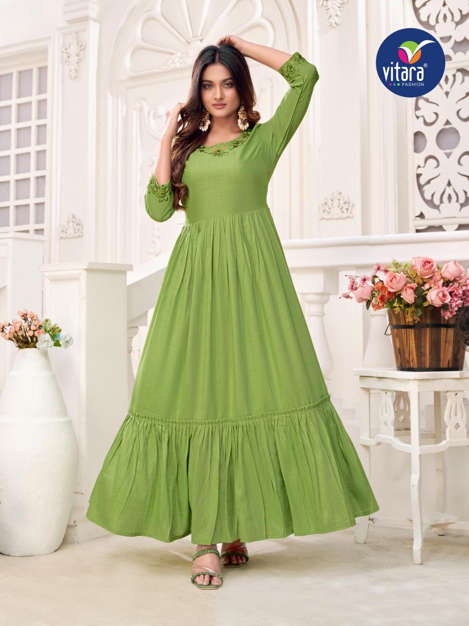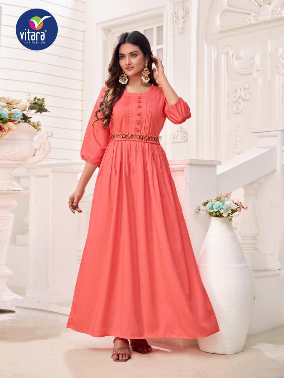 Vitara Fashion Rangmala Rayon Fancy Designer Partywear Kurti