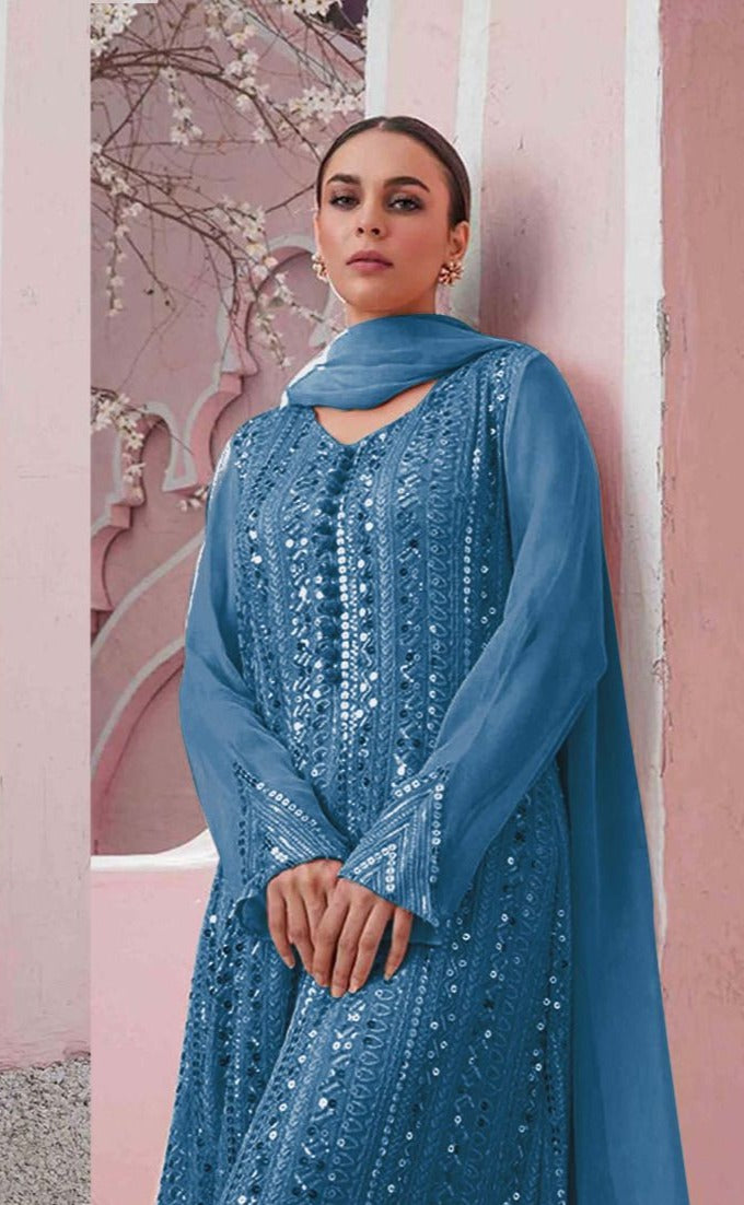 Fabric Details Top : Fox Georgette With Heavy Embroidery & Moti Lace Bottom Inner- Heavy Dull Santoon With Embroidery Dupatta : Naznin With Four Side lace |