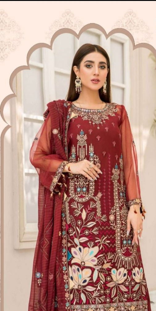 Fabric details Top : Fox Georgette With Heavy Embroidery Bottom Inner- Heavy Dull Santoon Dupatta :Naznin With Heavy embroidery |