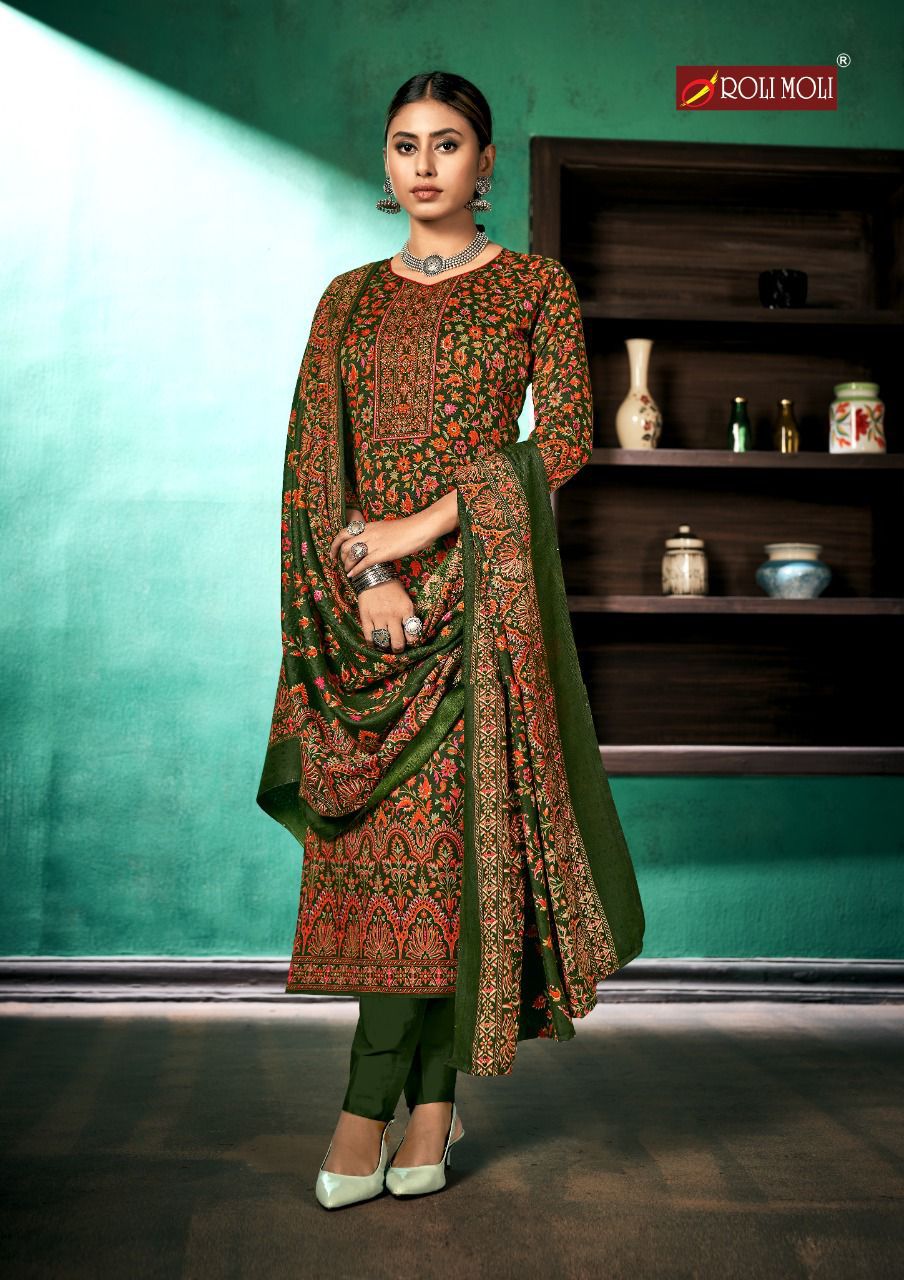 Roli Moli Creation Aadhya Pure Pashmina Print Diamond Work Winter Wear Suit