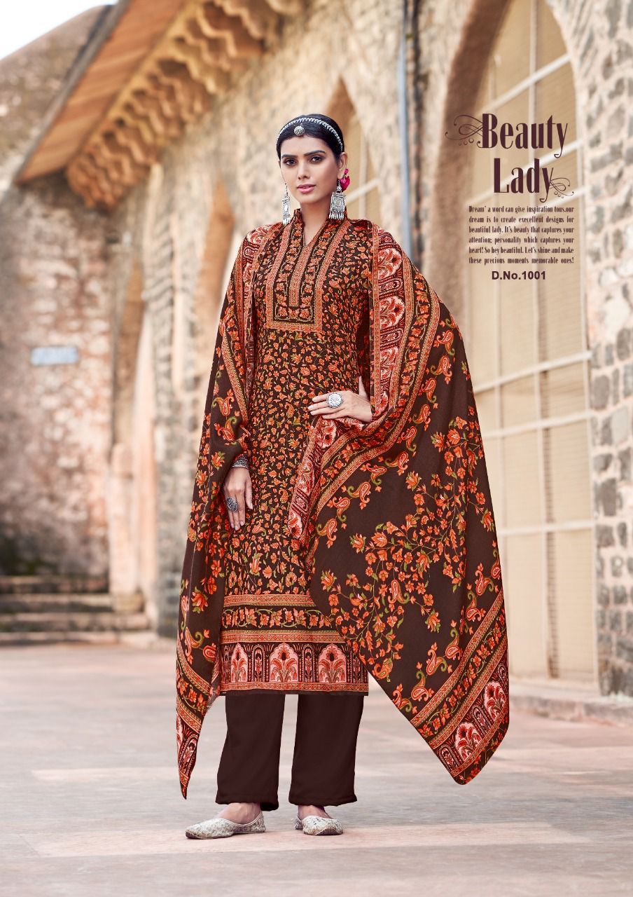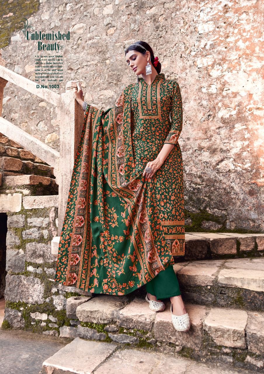 TOP :- *Pasmina jaquard * BOT:- *Heavy pashmina spun bottom * *Dupatta:- TWILL PASHMINA SHAWL *PRINTED 2:25 cut * |