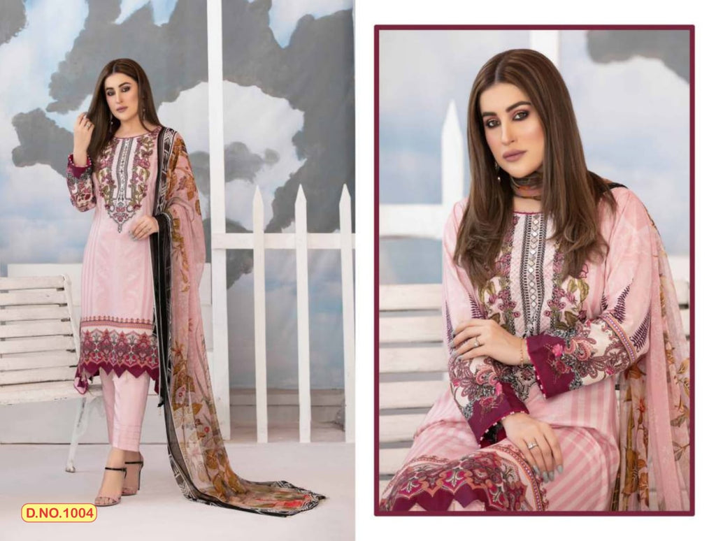 Top:-*LAWN COTTON (2.40Mtr) Bottom:-*LAWN COTTON (2 Mtr) Dupatta:-*pure mal mal Lawn Printed (2.25Mtr) |