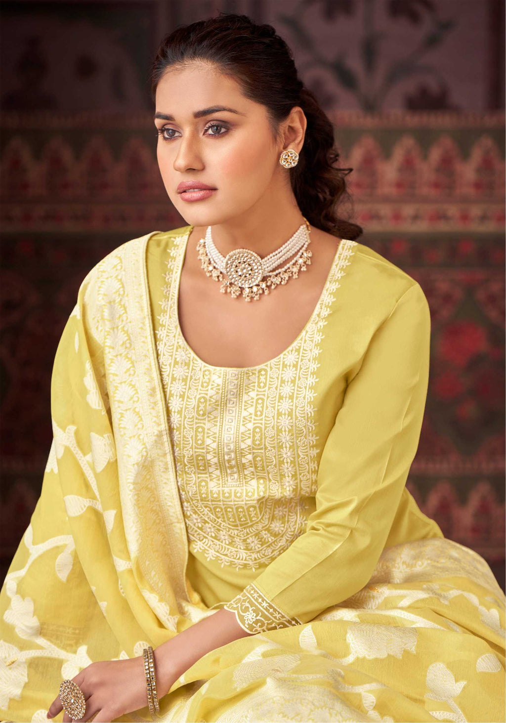 Top: Pure Zam Cotton Dyed with Lucknowi Thread Work & Swarovski Diamond Bottom: Pure Cotton Dyed Solid 🏳 Dupatta: Pure Hand Weave Lucknowi Pallu Dup with Tassels Piping |
